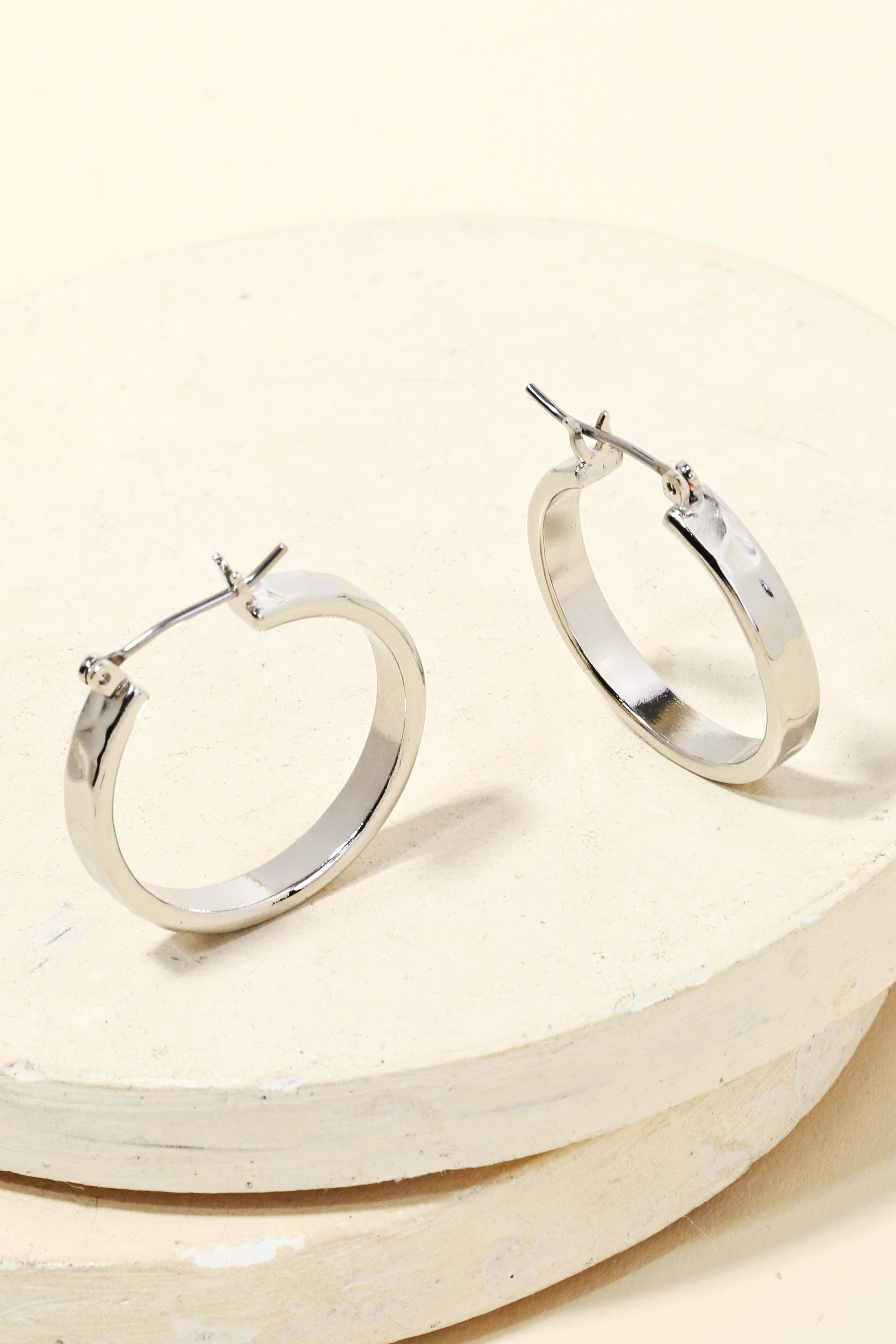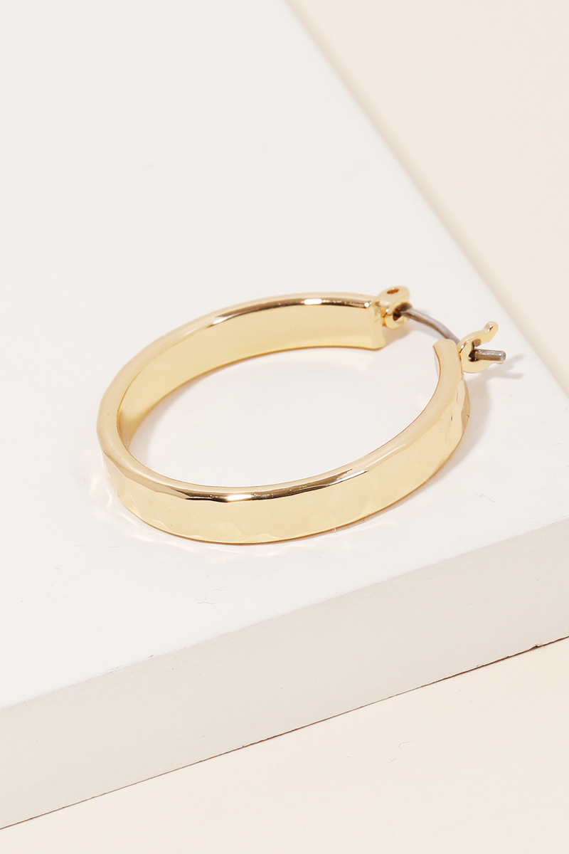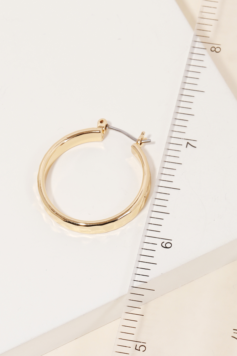 • A must have pair of hoop earrings that has a hammered pincatch hoop earrings design. Perfect for the coming Spring season. This item is sold in packs of 1.