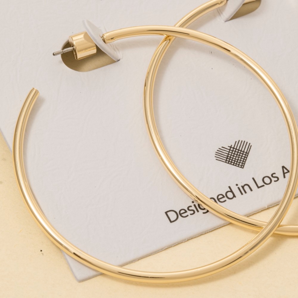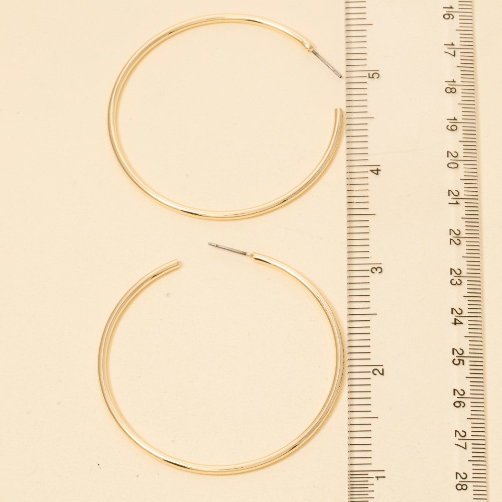 Stay ahead of the fashion curve, this pair of hoop earrings showcases an alluring large metallic tube design. Elevate your fashion game with this versatile pair of hoop earrings, seamlessly integrating into your signature style. Available in GOLD. This item is sold in packs of 1.