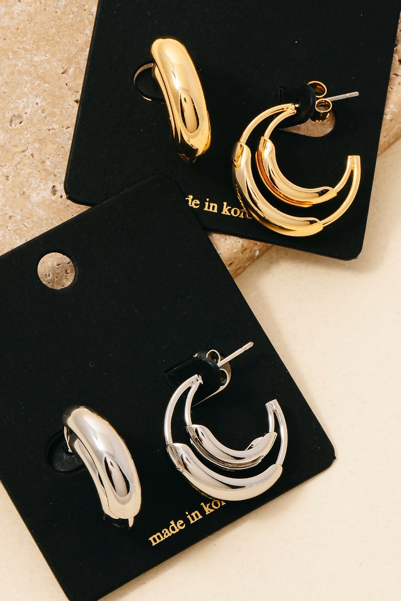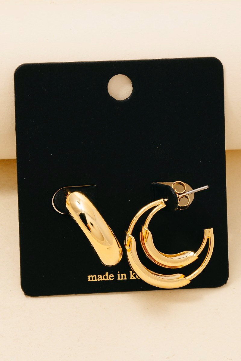 Elevate any look, this pair of hoop earrings evokes a captivating layered intricate design. Achieve a perfect balance of style and sophistication with this versatile pair of hoop earrings, the ultimate choice for the fashion-savvy individual. Available in G, S. This item is sold in packs of 1.