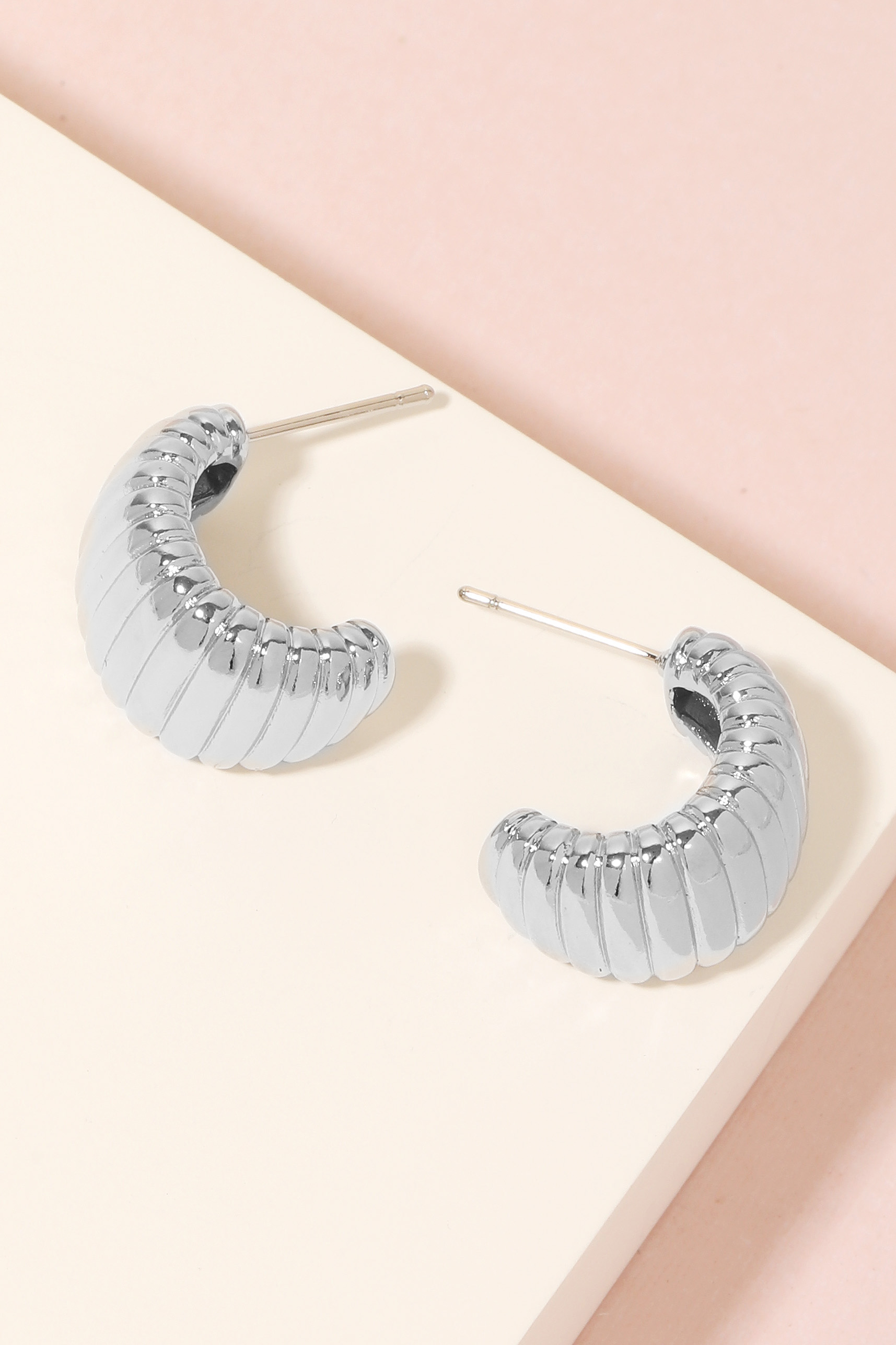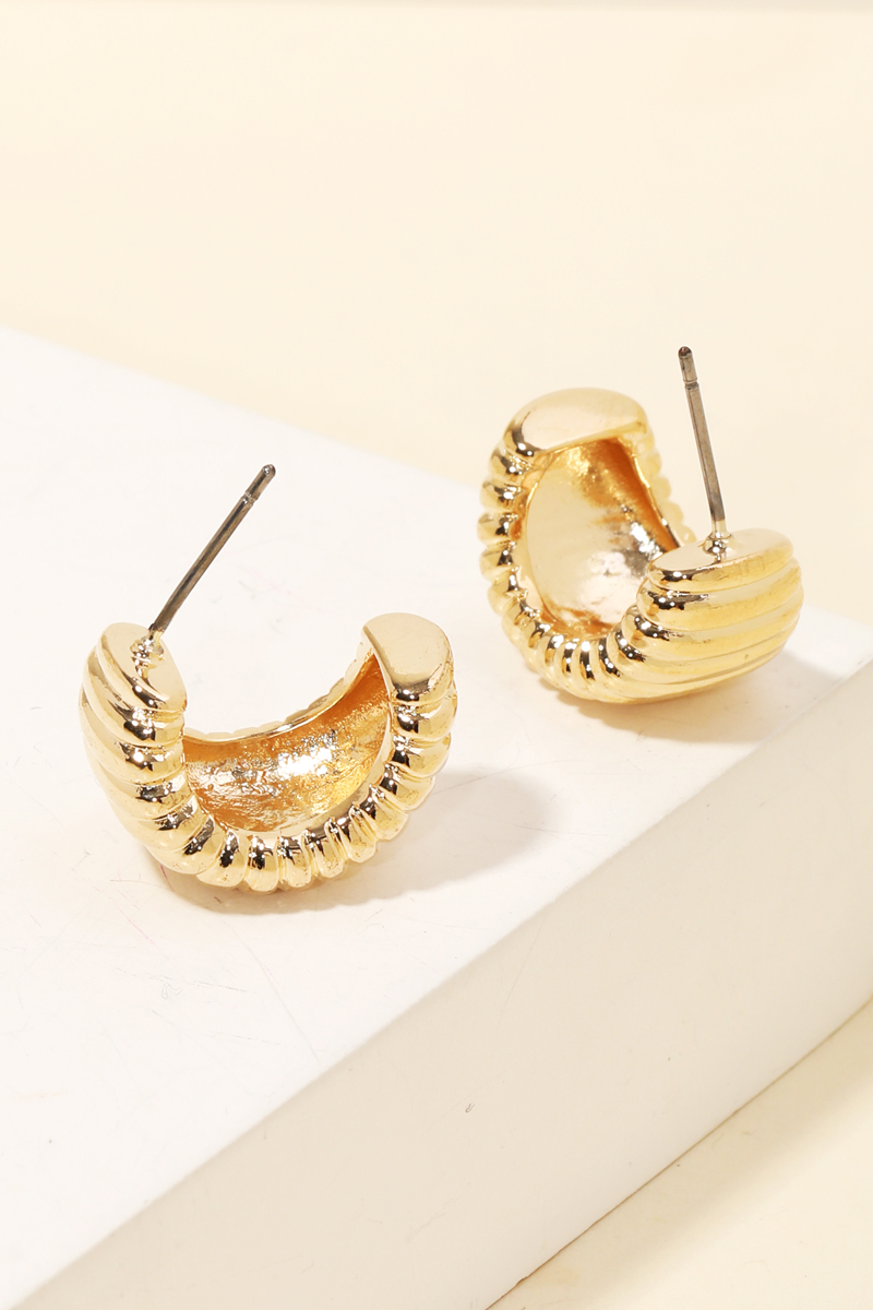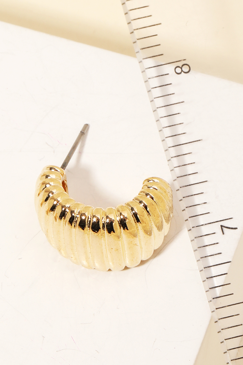 - Stay on-trend and ahead of the fashion curve, this pair of hoop earrings features a distinct metallic ribbed texture design. A stylish pair of hoop earrings that's perfect for complementing any outfit you wear. Available in S and G. This item is sold in packs of 1.