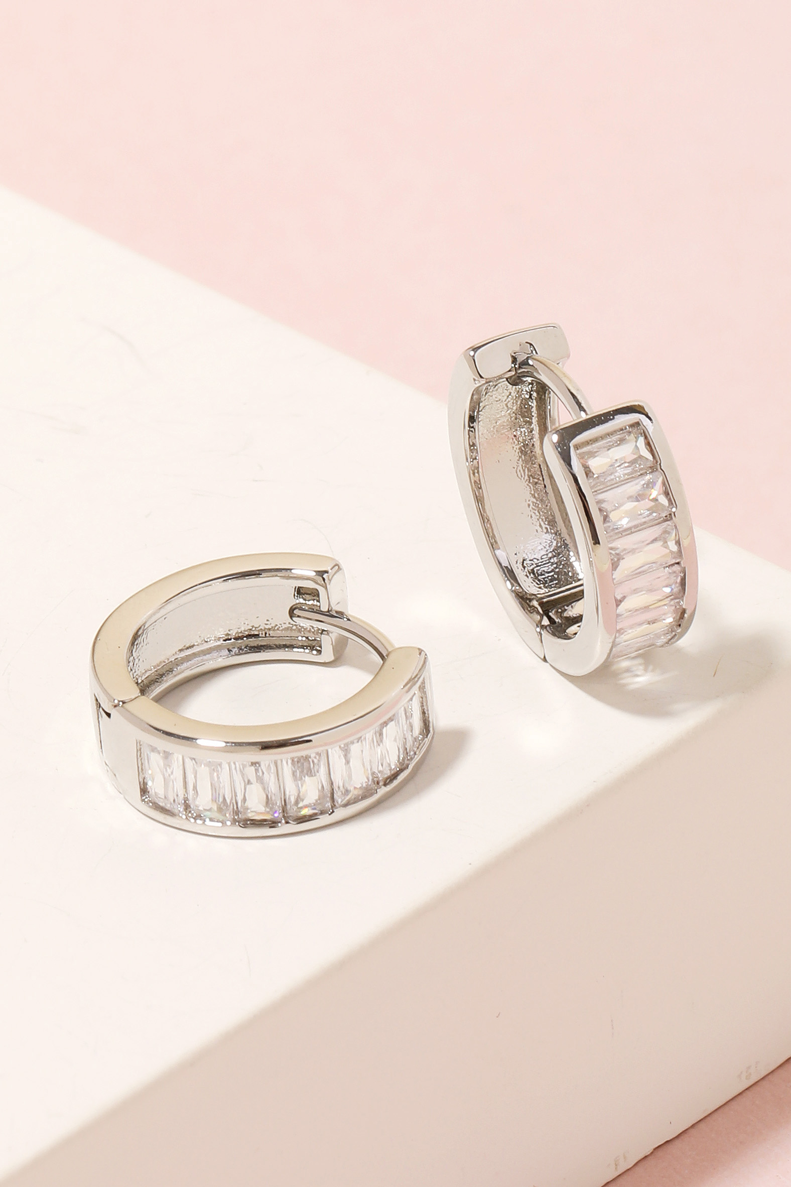 - A bold and daring choice, perfect for those who want to stand out from the crowd, this pair of earrings showcases an alluring mini rhinestone studded huggie earrings design. The perfect accessory for completing any outfit, whether you're dressing up or keeping it casual. This item is sold in packs of 1.