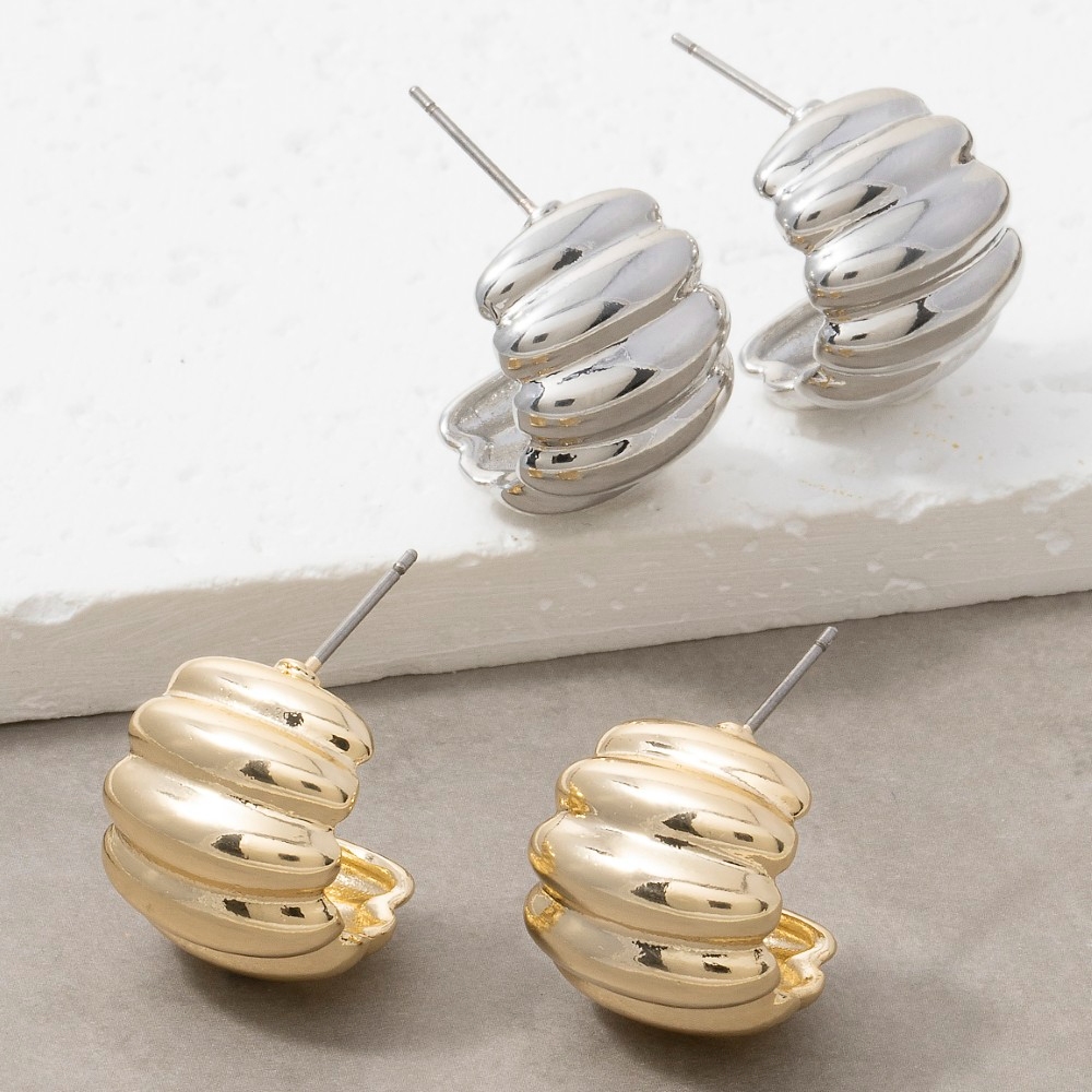 The perfect way to complete any outfit, this pair of hoop earrings showcases an alluring mini ridged c design. Add a touch of glamour to your wardrobe with this versatile pair of hoop earrings, perfect for enhancing the elegance of any look. Available in G. This item is sold in packs of 1.