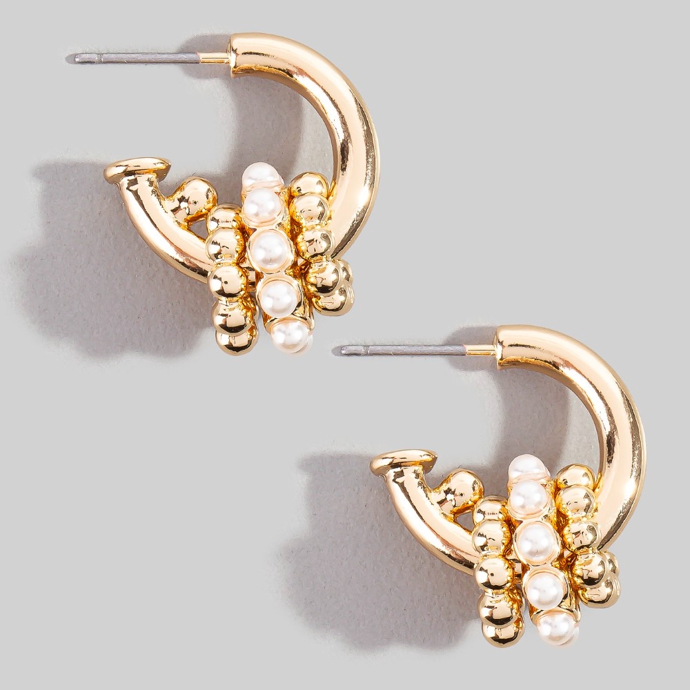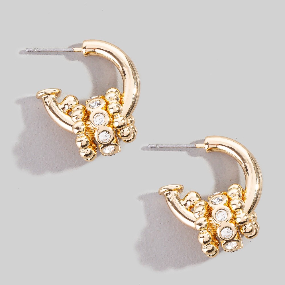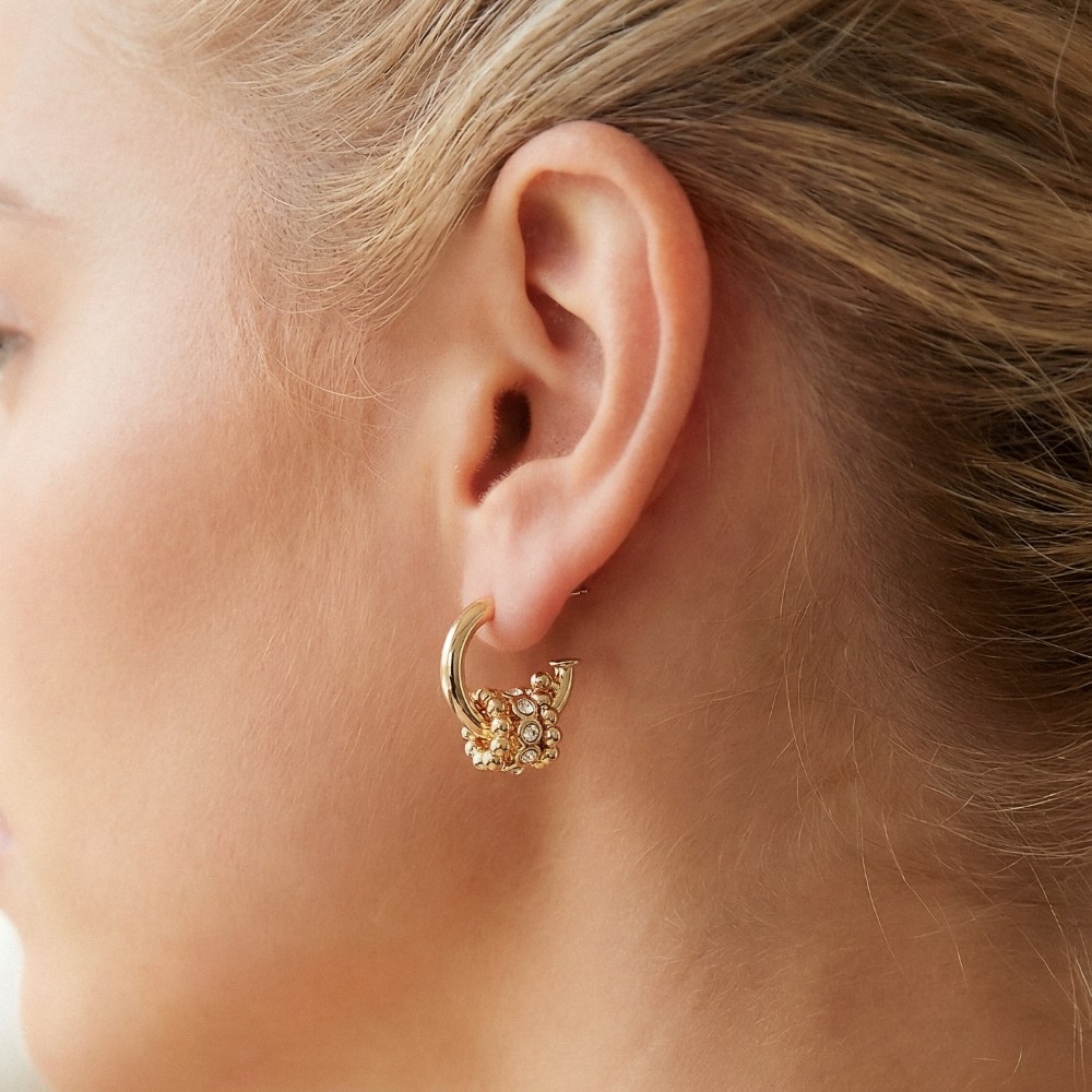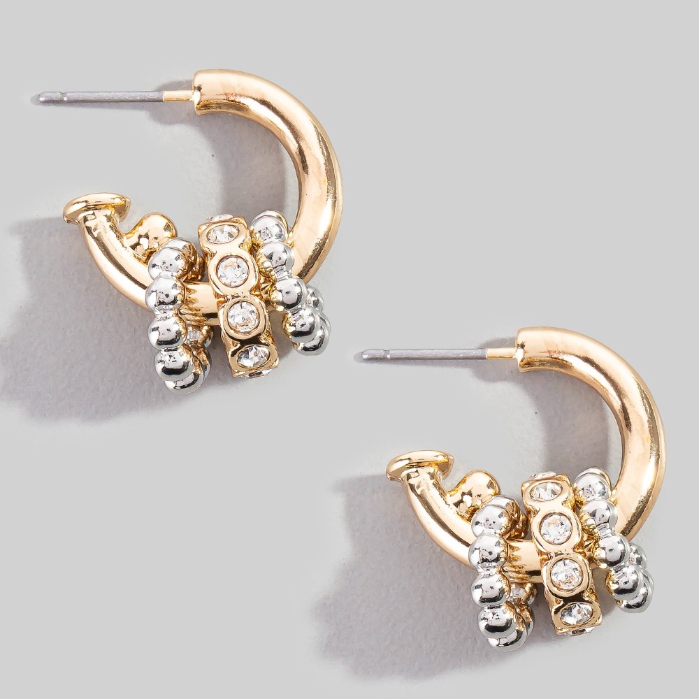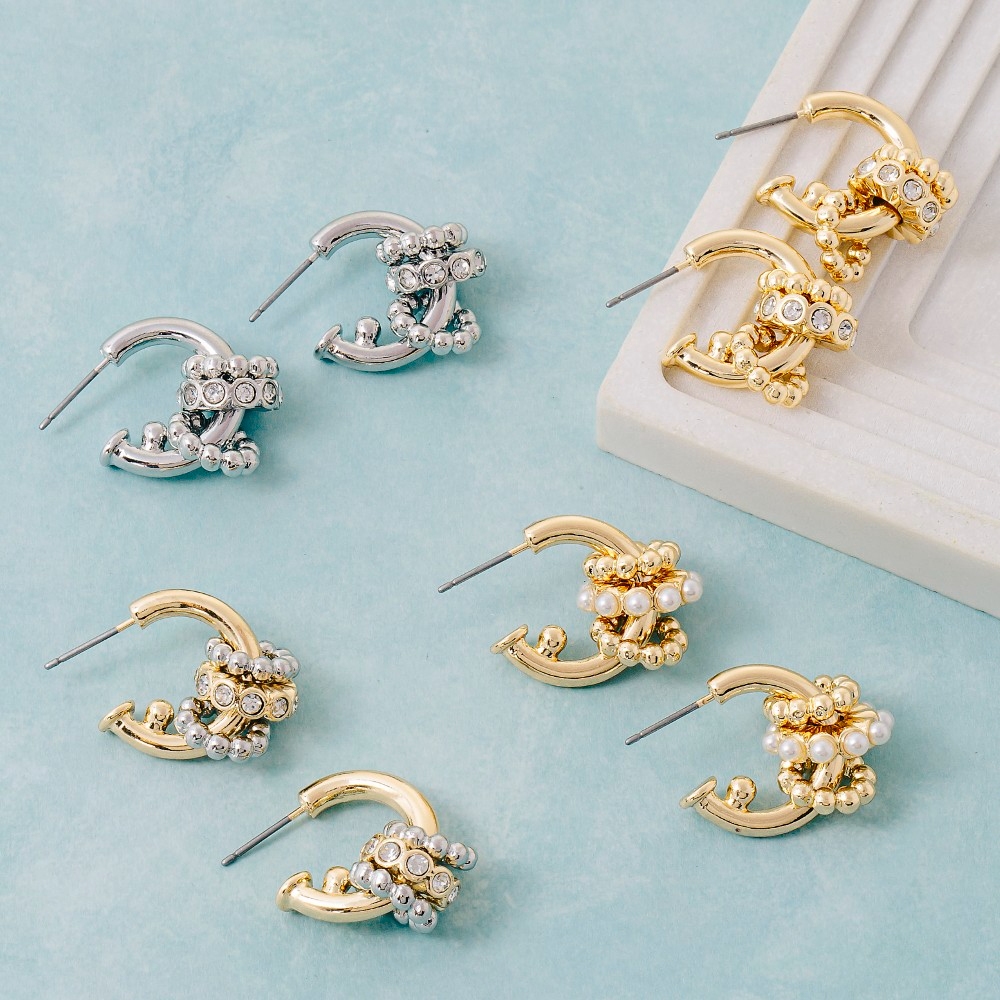 Bold, daring, and endlessly stylish, this pair of hoop earrings possesses a fine mini ring charms design. This pair of hoop earrings is a great way to add some glamour and sophistication to your outfit. Available in CLG, CLGS, CLS, PLG. This item is sold in packs of 1.