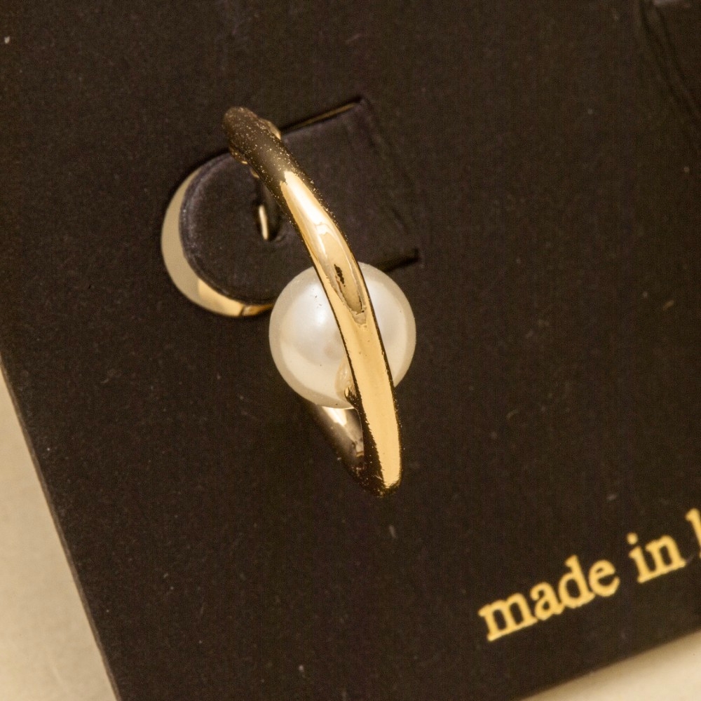 This pair of hoop earrings is made with 80% Brass and 20% Acrylic Pearl.