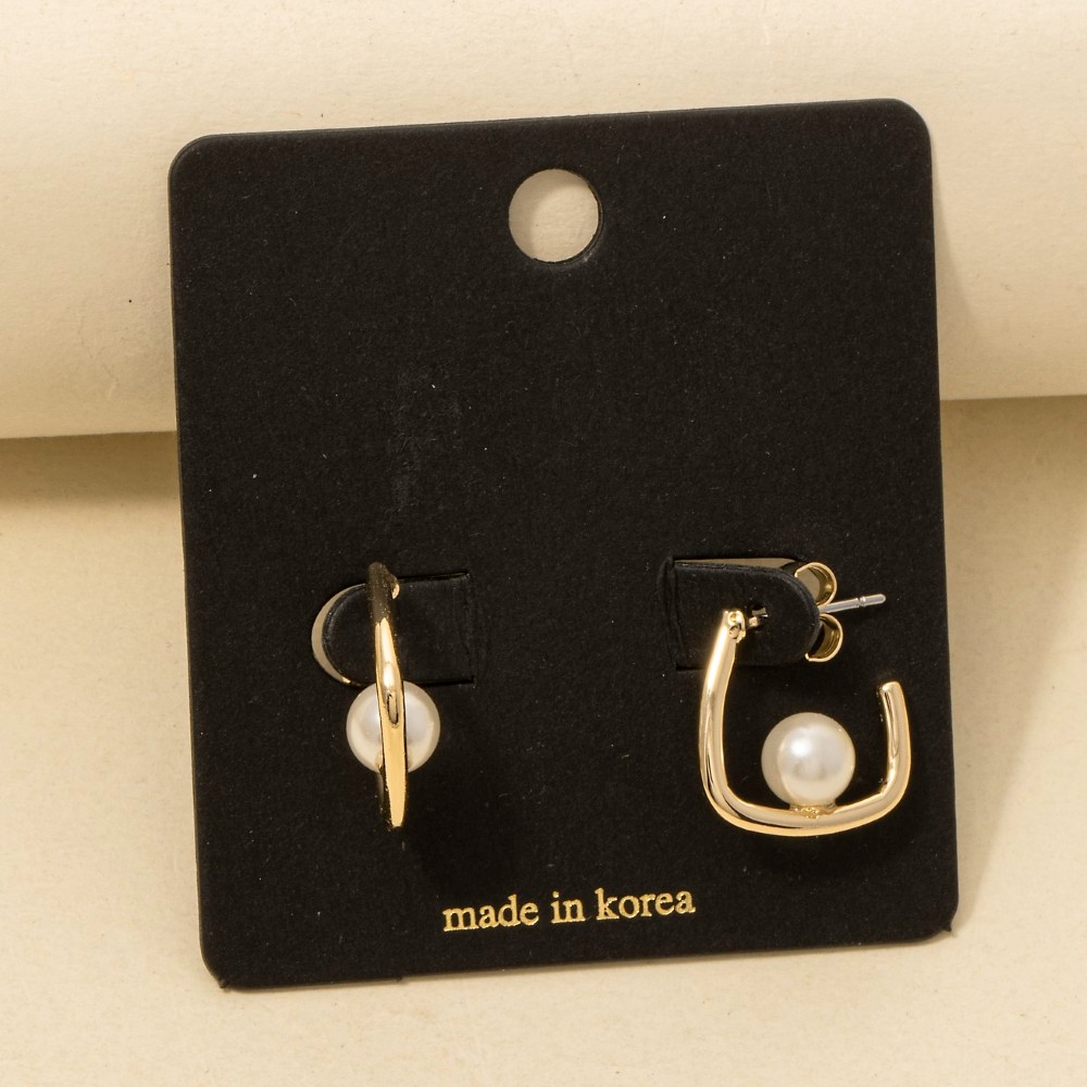 Perfectly polished and endlessly versatile, this pair of hoop earrings radiates a sleek pearl ball square design. Make a lasting impression with this versatile pair of hoop earrings, a subtle yet impactful addition to your fashion repertoire. Available in G. This item is sold in packs of 1.
