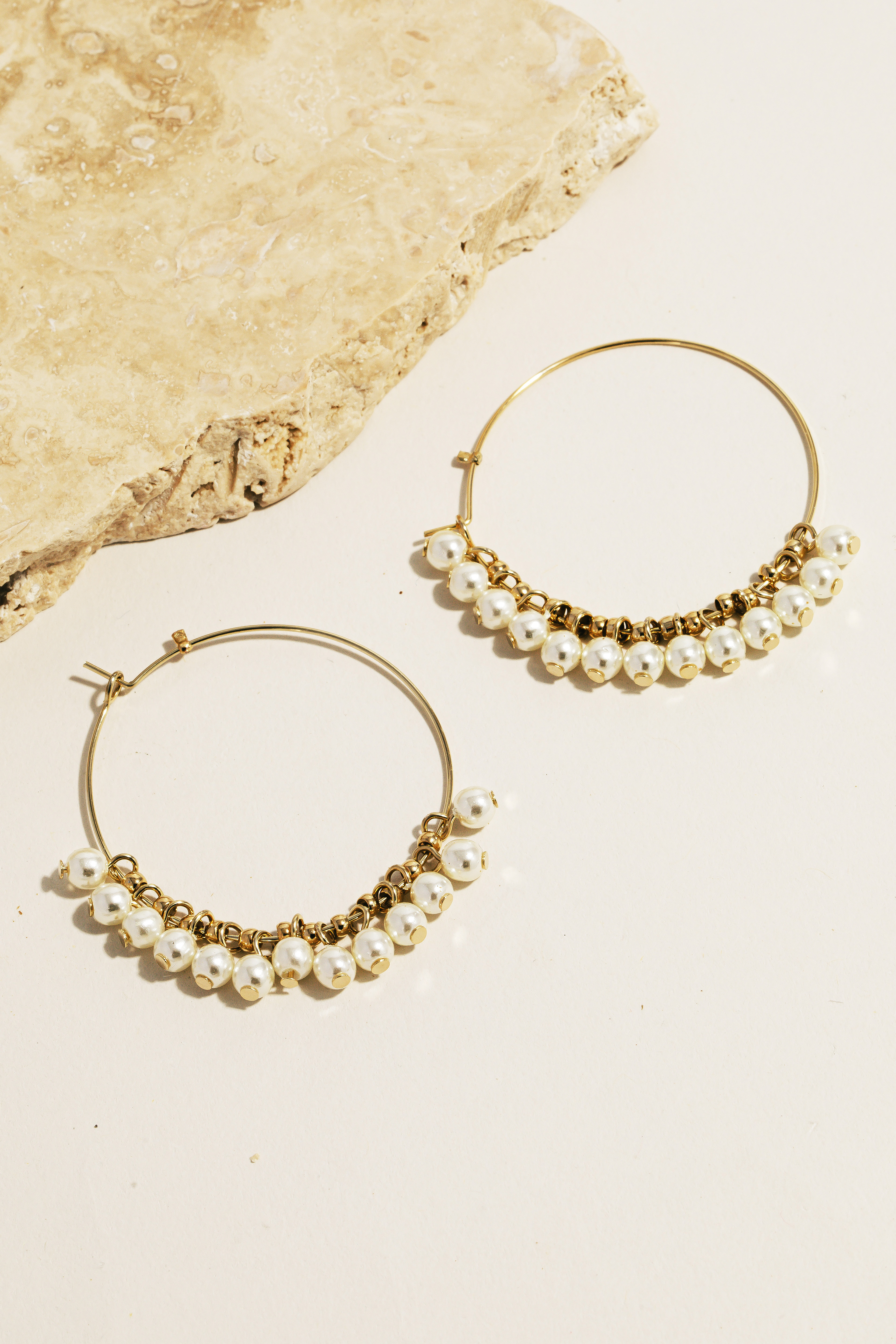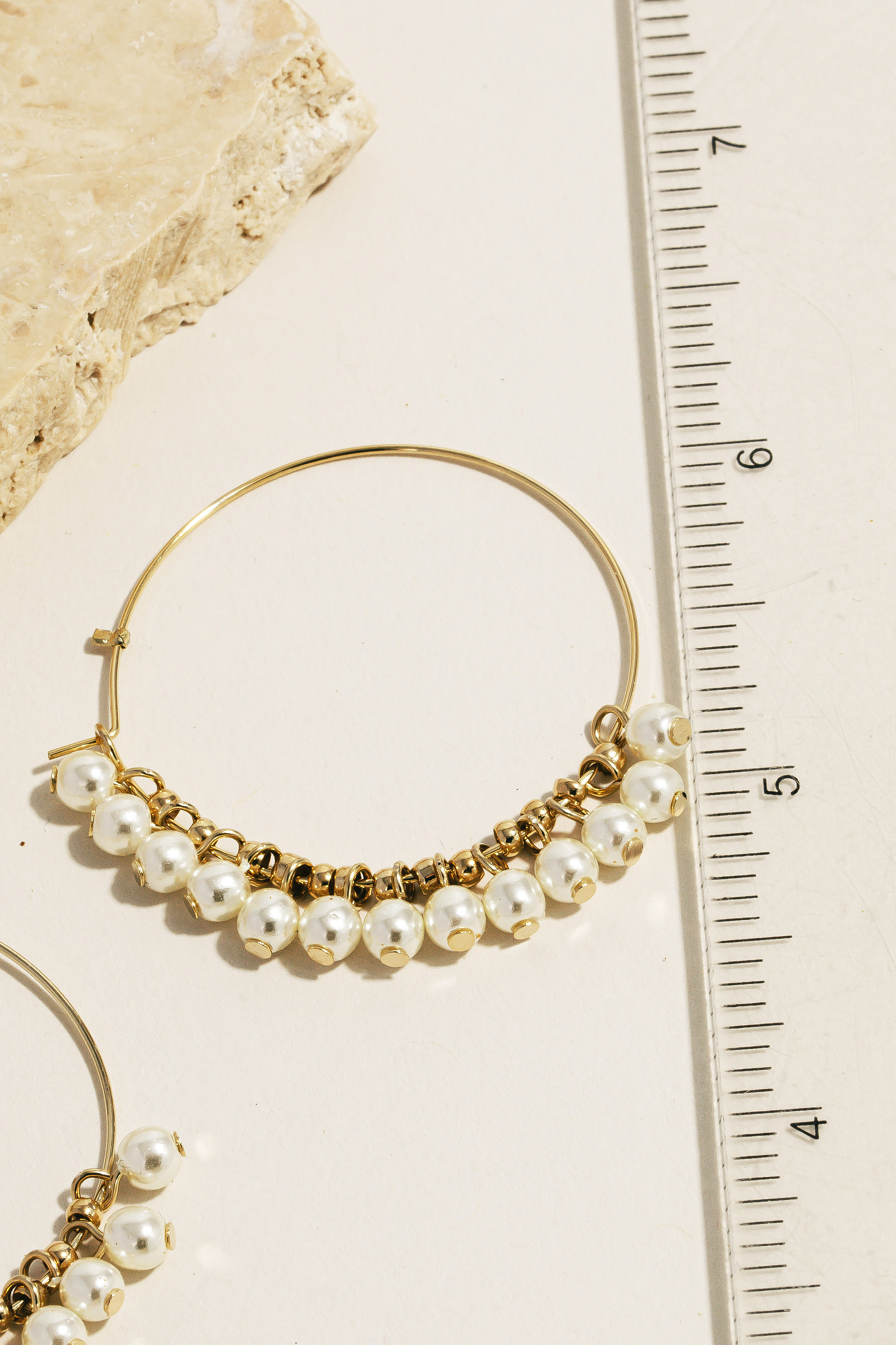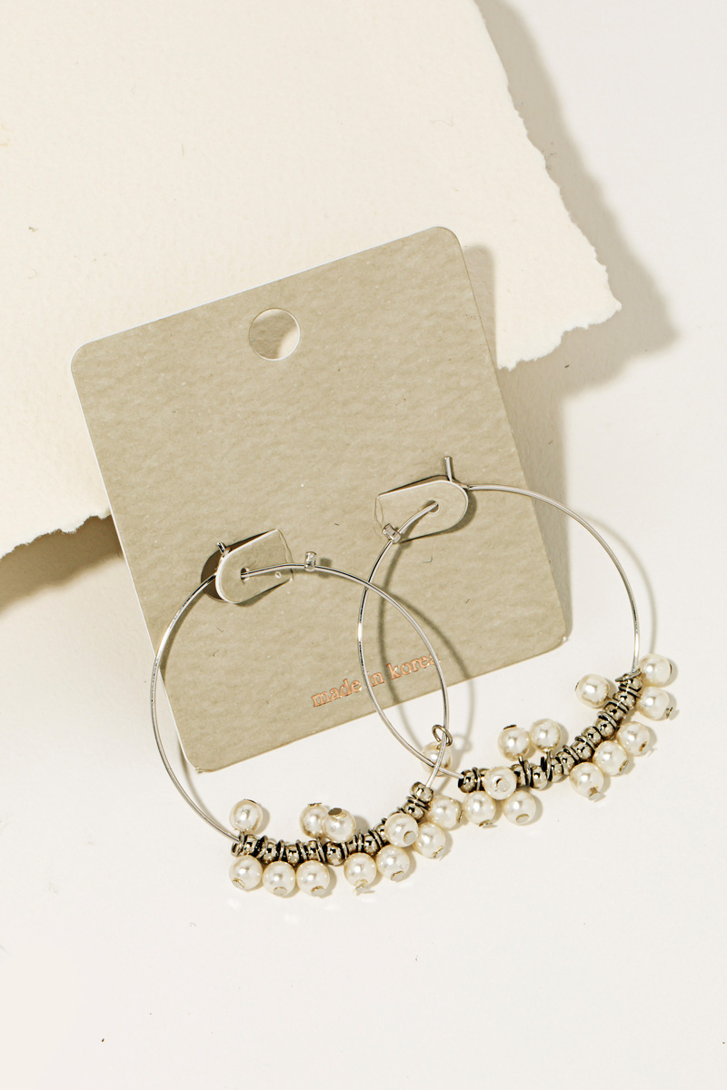 • This pair of hoop earrings is made with 60% Brass and 40% Acrylic Pearl.