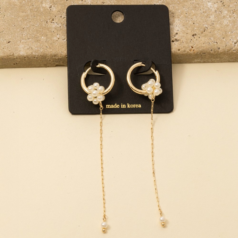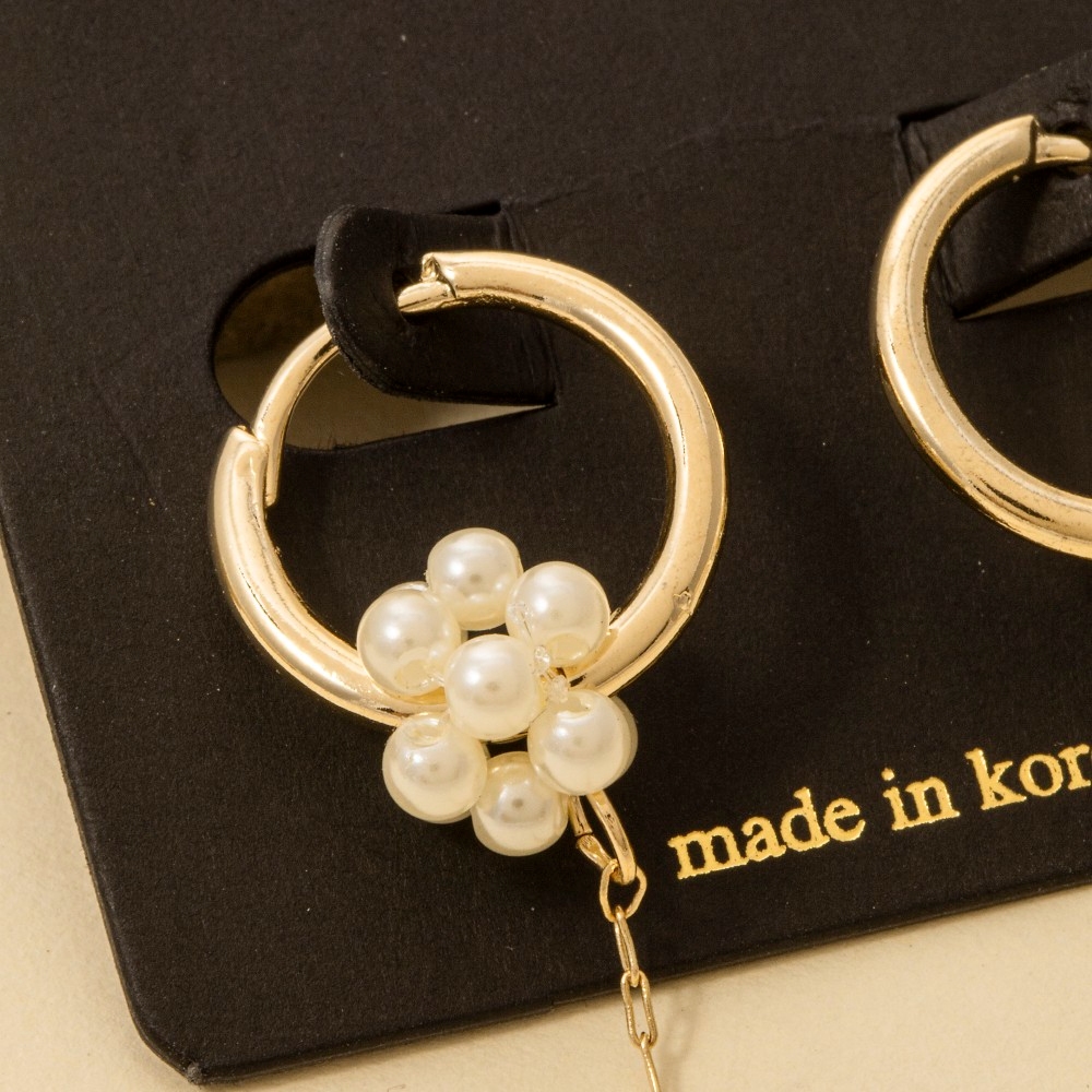 • This piece is designed to be both stylish and functional, this pair of hoop earrings embodies a sophisticated pearl cluster and chain drop design. Upgrade your fashion game with this versatile pair of hoop earrings, a timeless addition that complements any outfit seamlessly. Available in G. This item is sold in packs of 1.