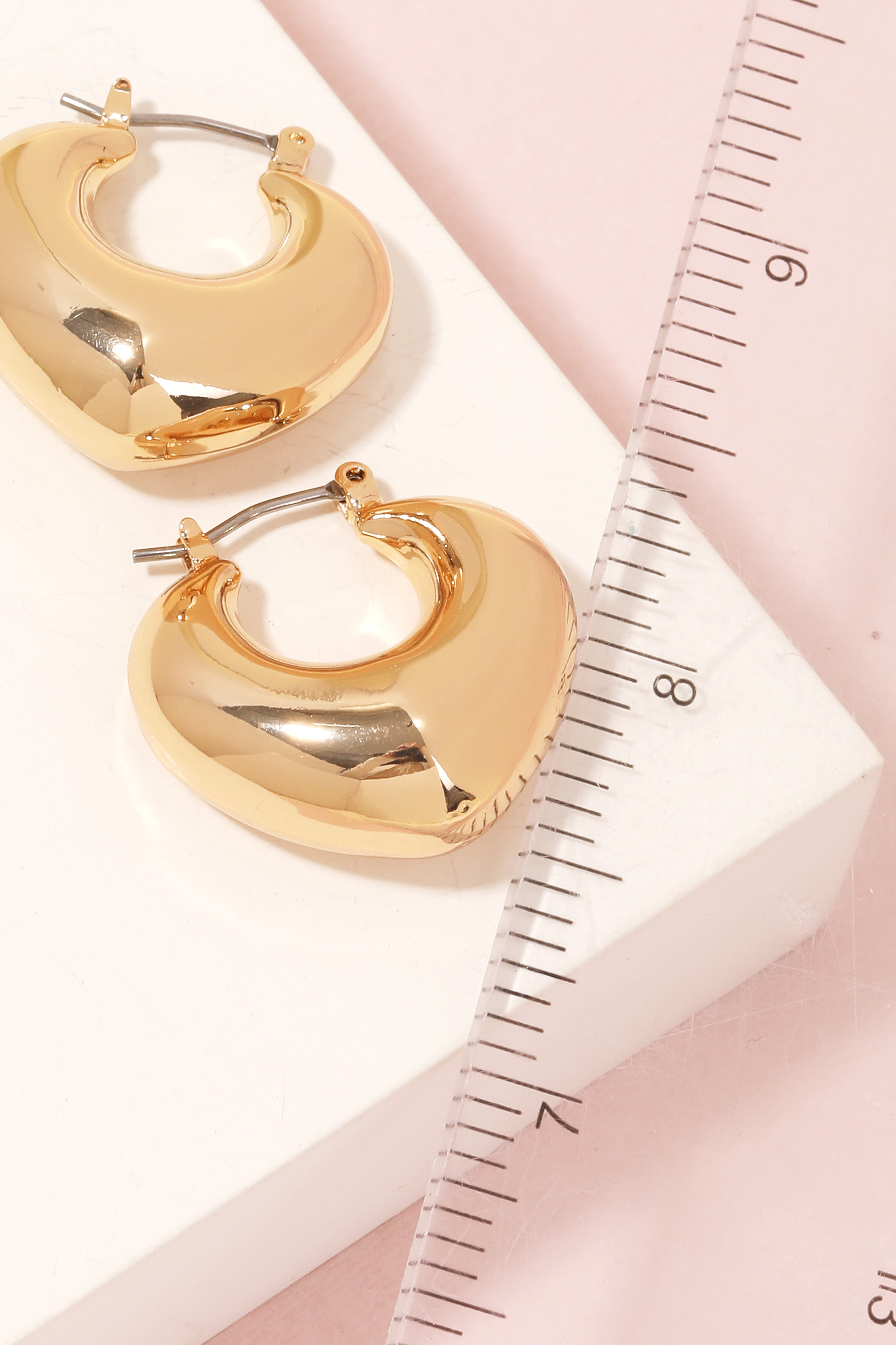 Effortlessly elevate your outfit with this pair of hoop earrings includes a stunning puffy hoop earrings design. Perfect for any occasion, this versatile accessory will enhance any outfit you wear. Available in G. This item is sold in packs of 1.