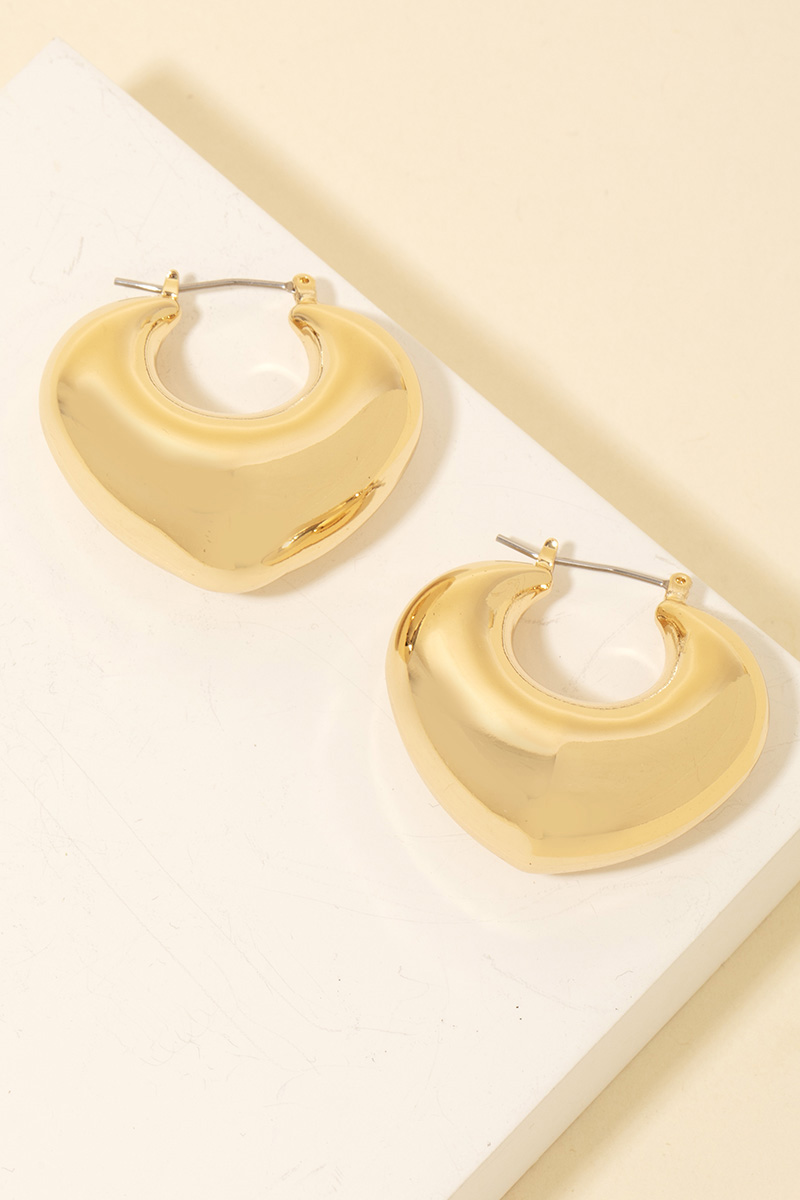 - The epitome of sophistication and style, this pair of hoop earrings showcases an alluring puffy triangle pincatch hoop earrings design. Infuse elegance into your daily wardrobe with the versatile charm of this must-have accessory. Available in G. This item is sold in packs of 1.