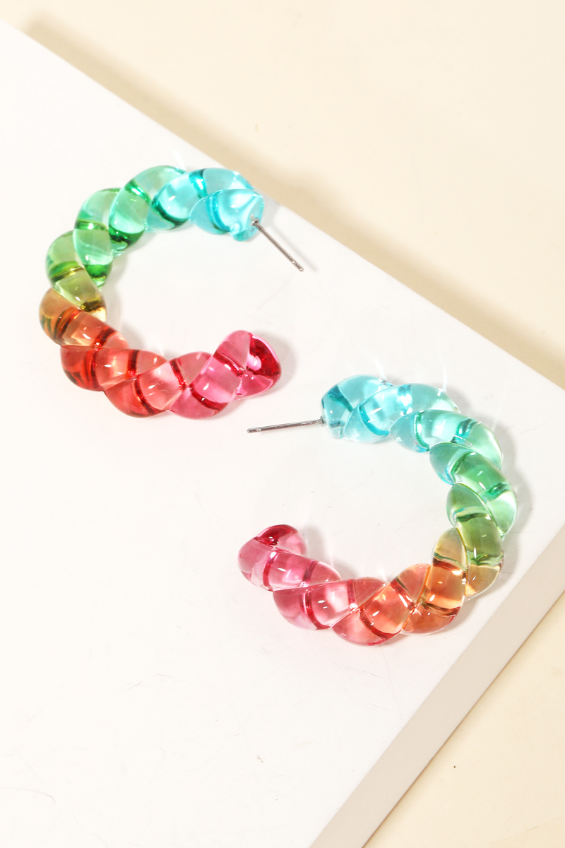 Resin Two Tone Twist Hoop Earrings