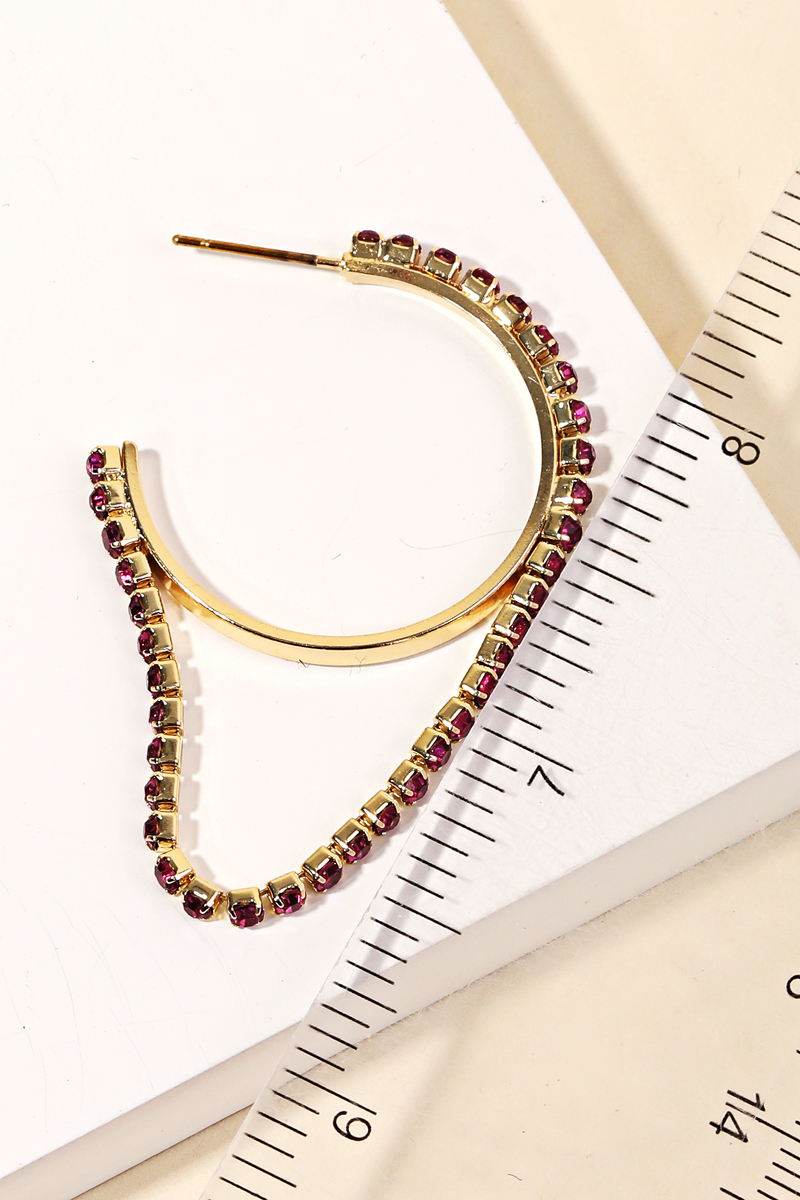 • This piece is designed to make a statement, this pair of hoop earrings embodies a sophisticated rhinestone studded chain hoop earrings design. The perfect accessory for completing any outfit, whether you're dressing up or keeping it casual. Available in GDCRY, GDFU and RHCRY. This item is sold in packs of 1.