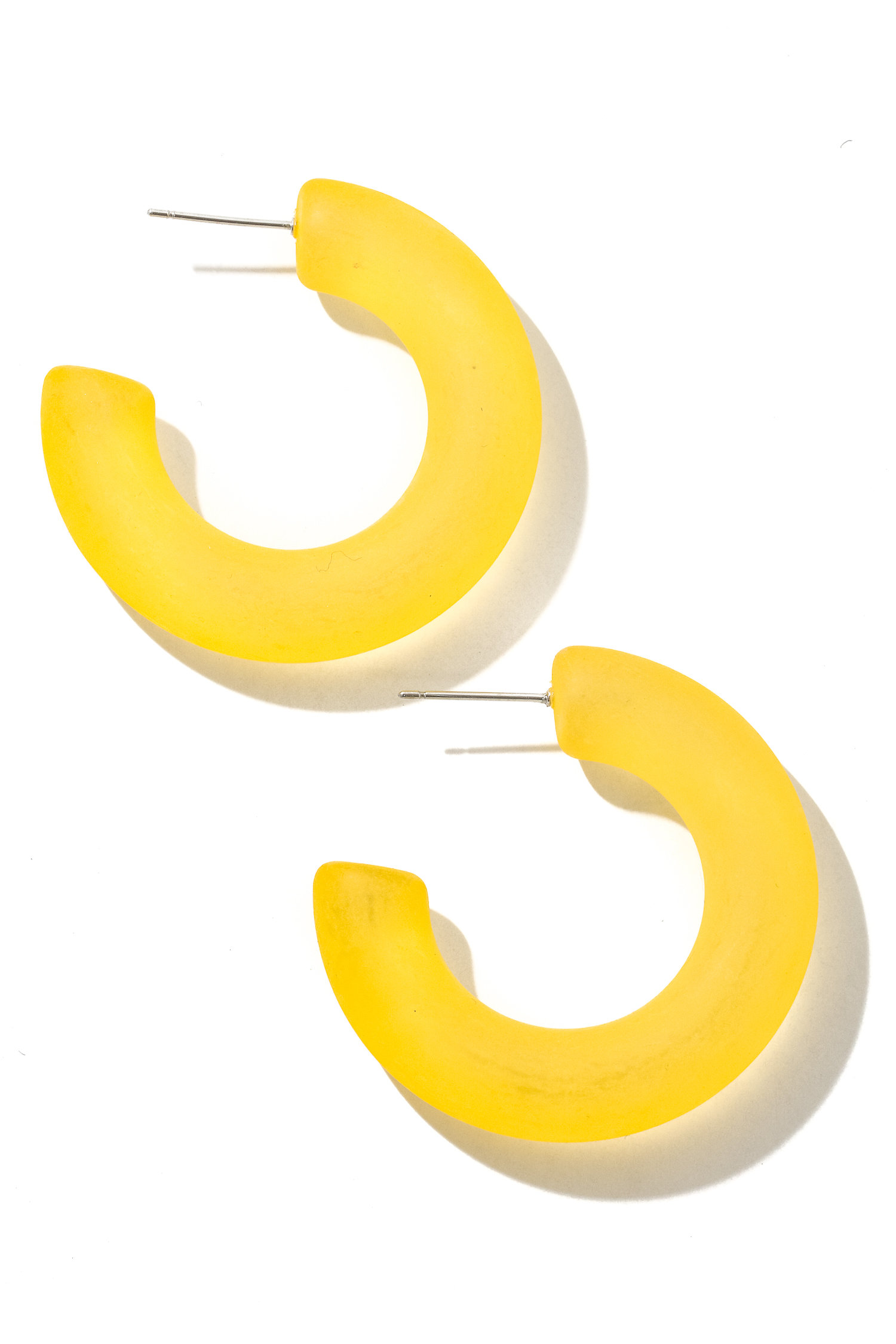 Classy, Flashy, and everything in between must have pair of earrings that has a unique round matte resin hoop earrings design. Fits beautifully well in any scenario! Available in Mi, Pk, Wh and Ye.
