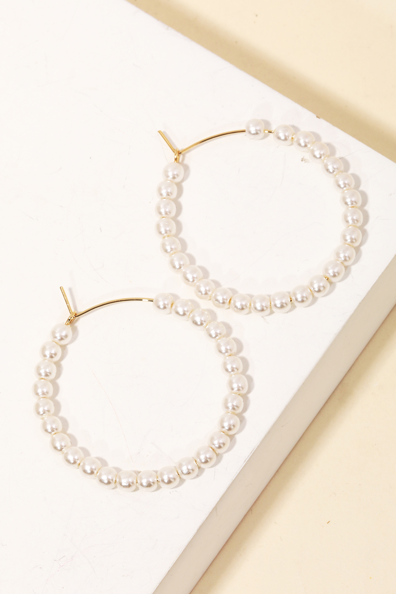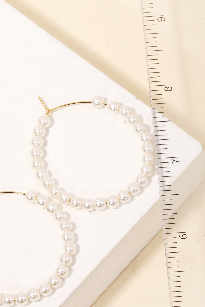 • A bold and daring choice, perfect for those who want to stand out from the crowd, this pair of hoop earrings carries a charming round pearl beaded wire hoop earrings design. This accessory is an effortless way to add some personality to your outfit. Available in G. This item is sold in packs of 2.
