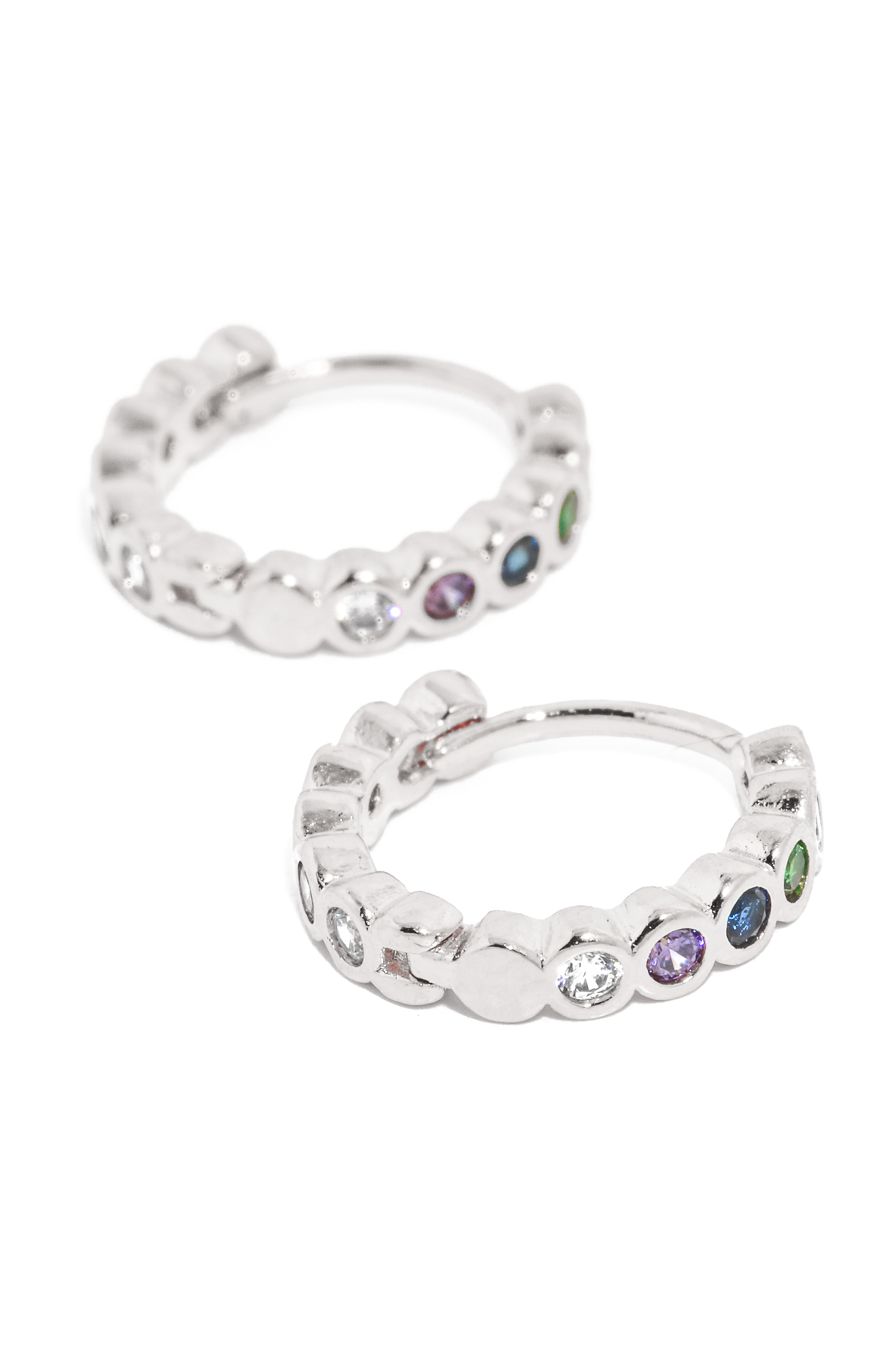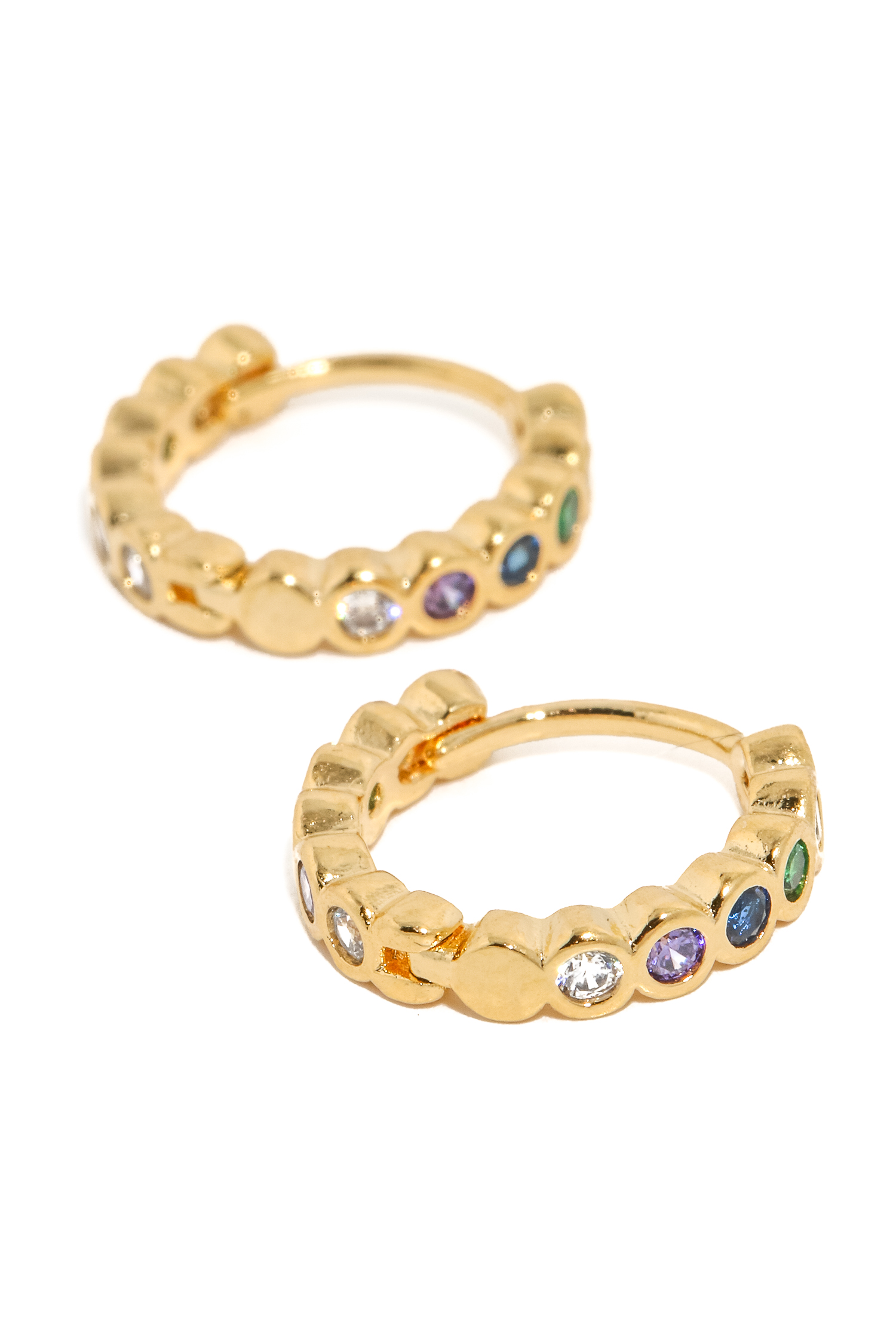 A stunning must have pair of earrings features a detailed round studded hoop earrings design. Perfect for casual occasions!