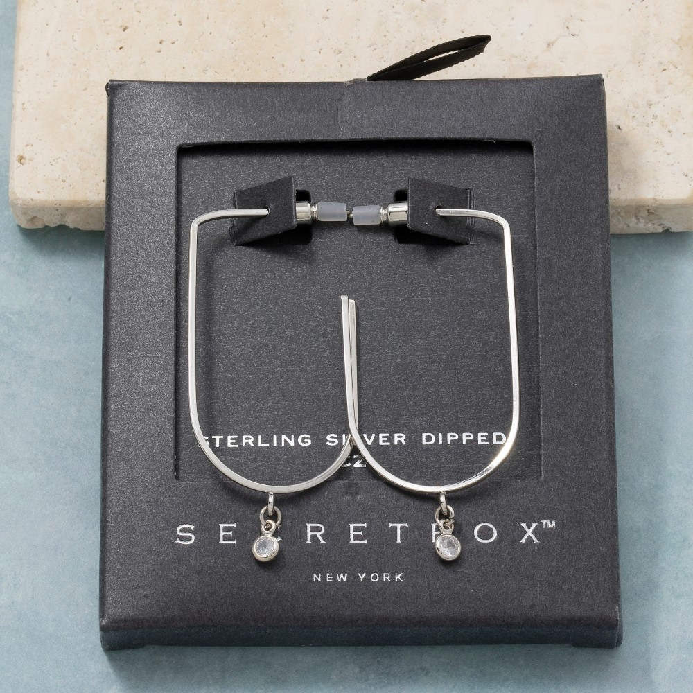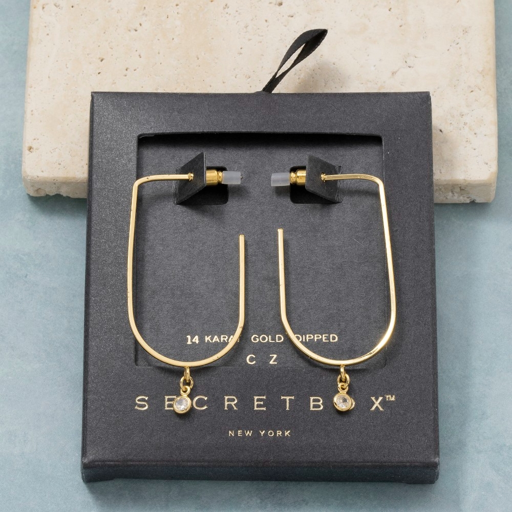 • Stay ahead of the fashion curve, this pair of hoop earrings features a distinct secret box gold dipped cubic zirconia thin design. This pair of hoop earrings is the perfect finishing touch to any outfit, adding a touch of sophistication and glamour. Available in GD, WG. This item is sold in packs of 1.
