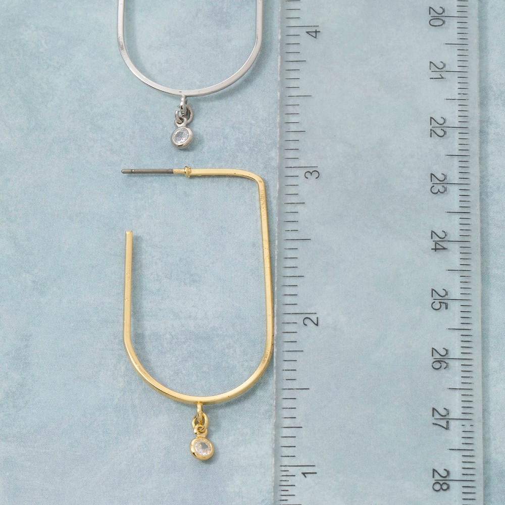 Gold Dipped Cz Stud End Hinge Hoop Earrings