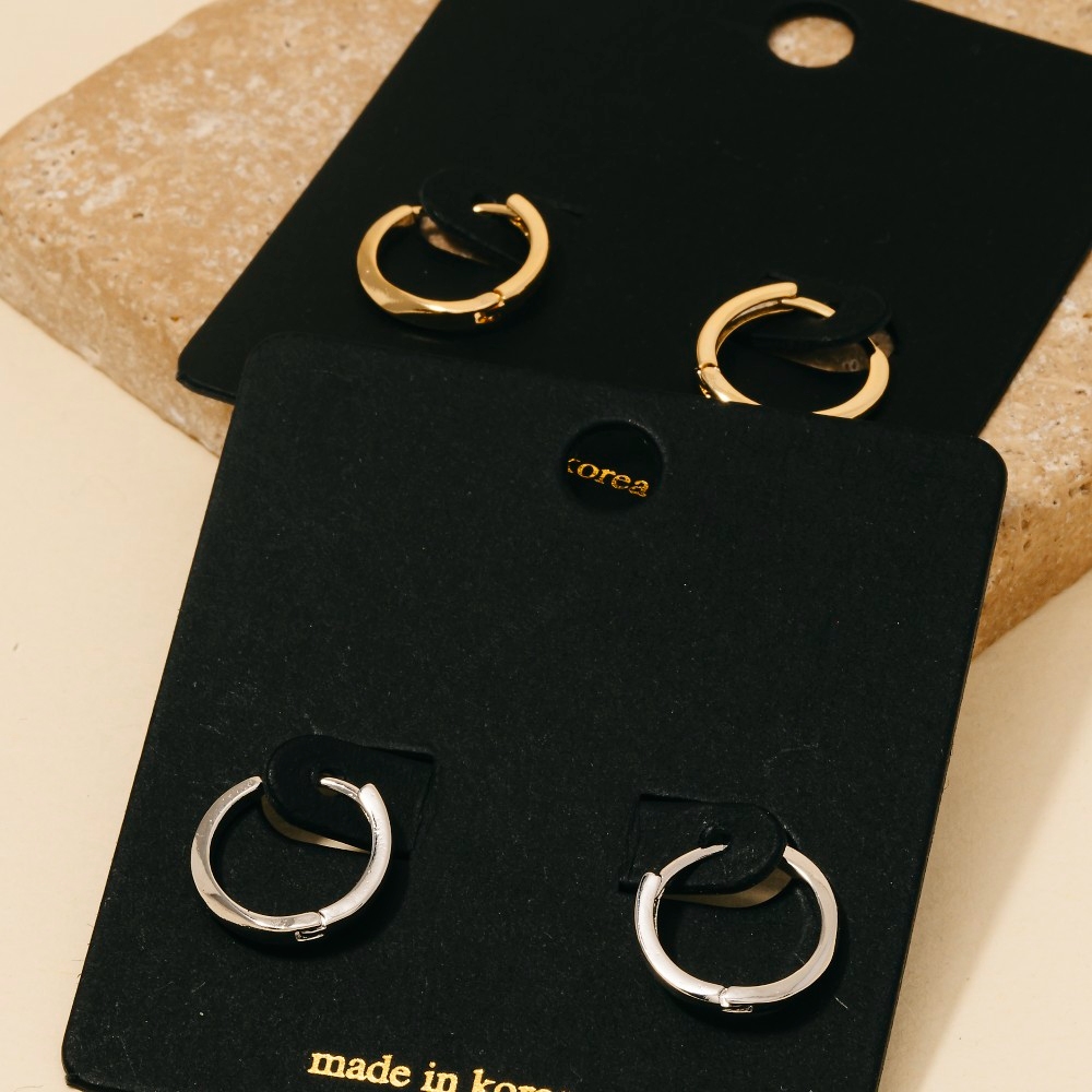 • Effortlessly elevate your style, this pair of hoop earrings emanates an elegant simple metallic hinge design. A must-have pair of hoop earrings for anyone who loves to add some flair to their outfits. Available in G, S. This item is sold in packs of 1.