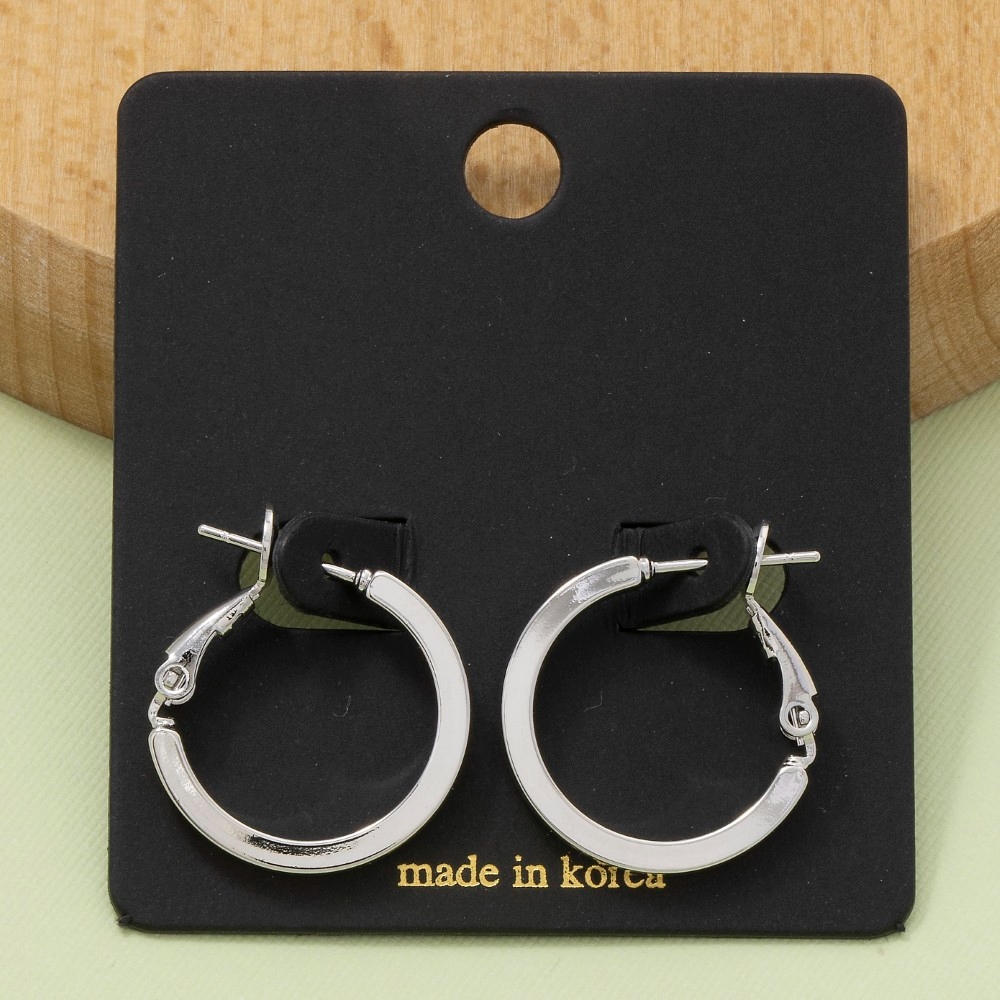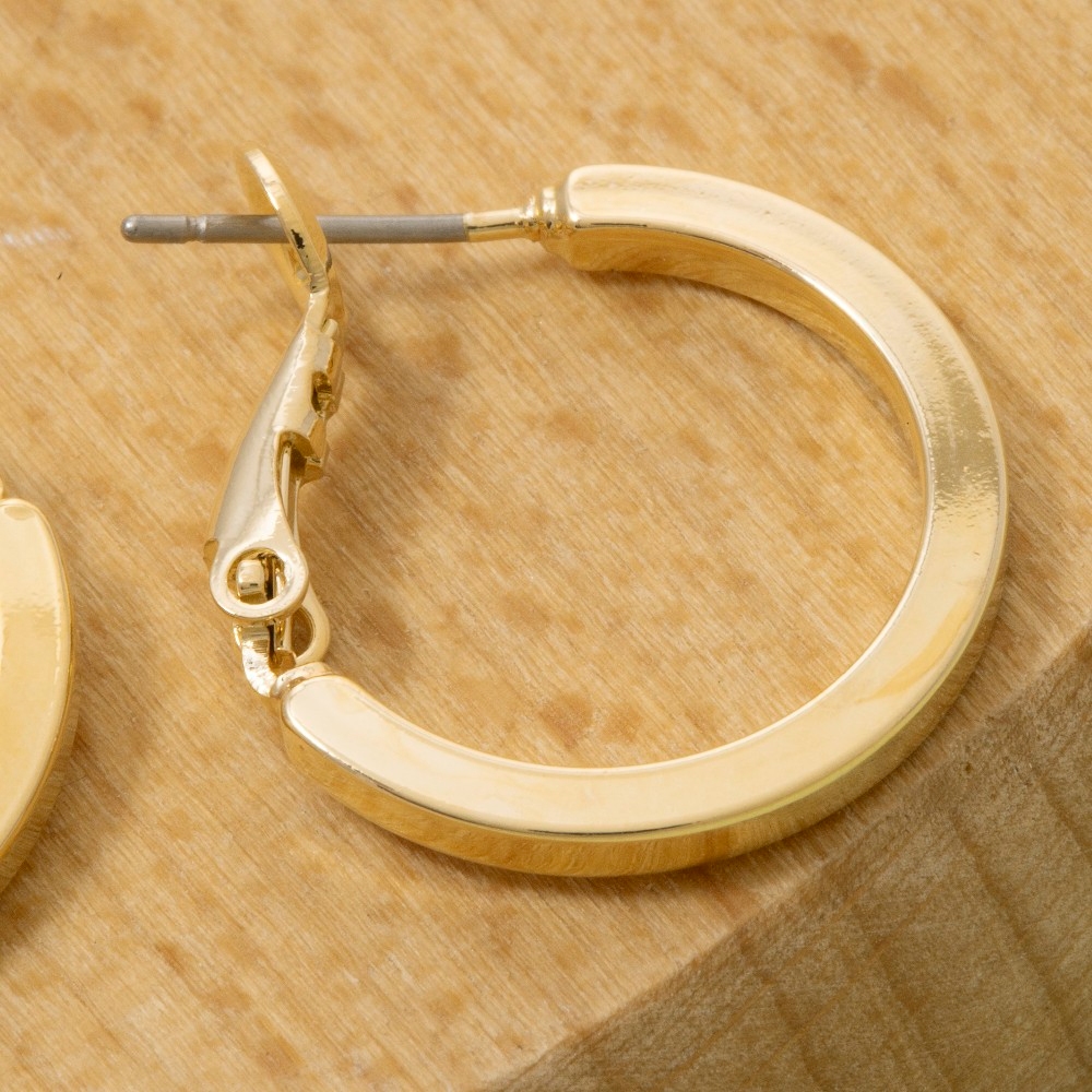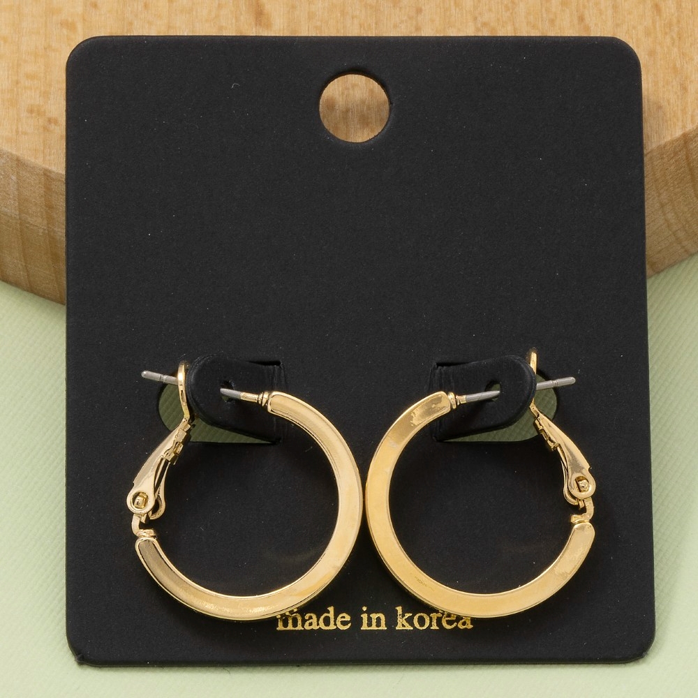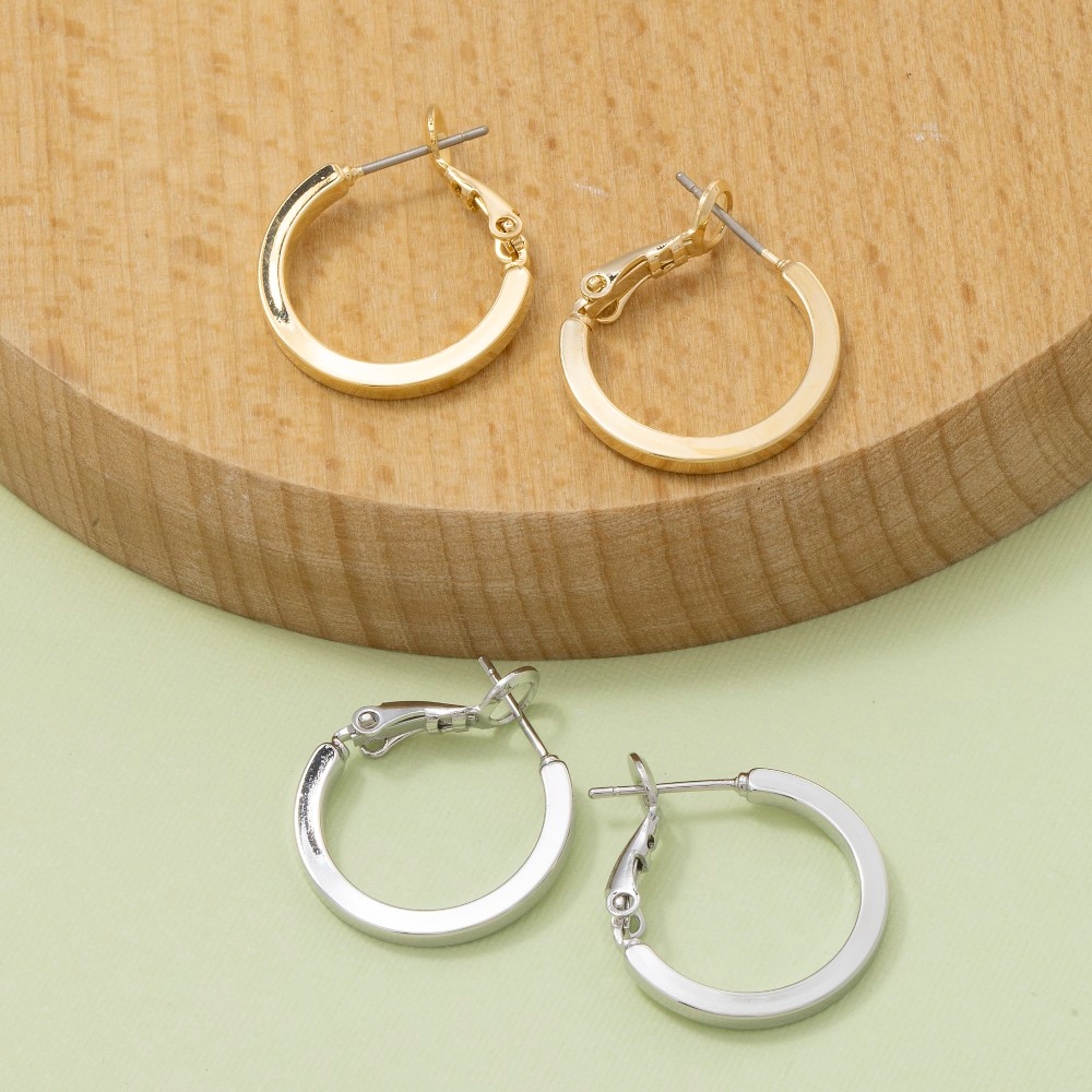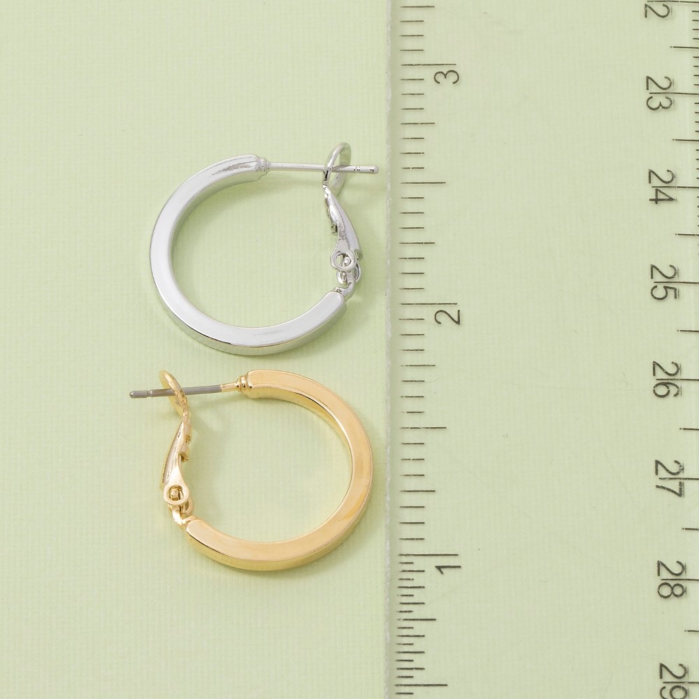 A bold and daring choice that is sure to impress, this pair of hoop earrings offers a remarkable small flat sided latch design. The perfect way to complete any outfit, whether you're dressing up or keeping it casual. Available in G, S. This item is sold in packs of 1.