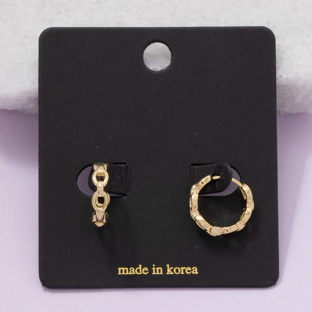 - A versatile and stylish addition to any wardrobe, this pair of hoop earrings incorporates a remarkable solid mini chain hinge design. Perfect for dressing up your favorite outfit, this pair of hoop earrings is a must-have. Available in G, S. This item is sold in packs of 1.