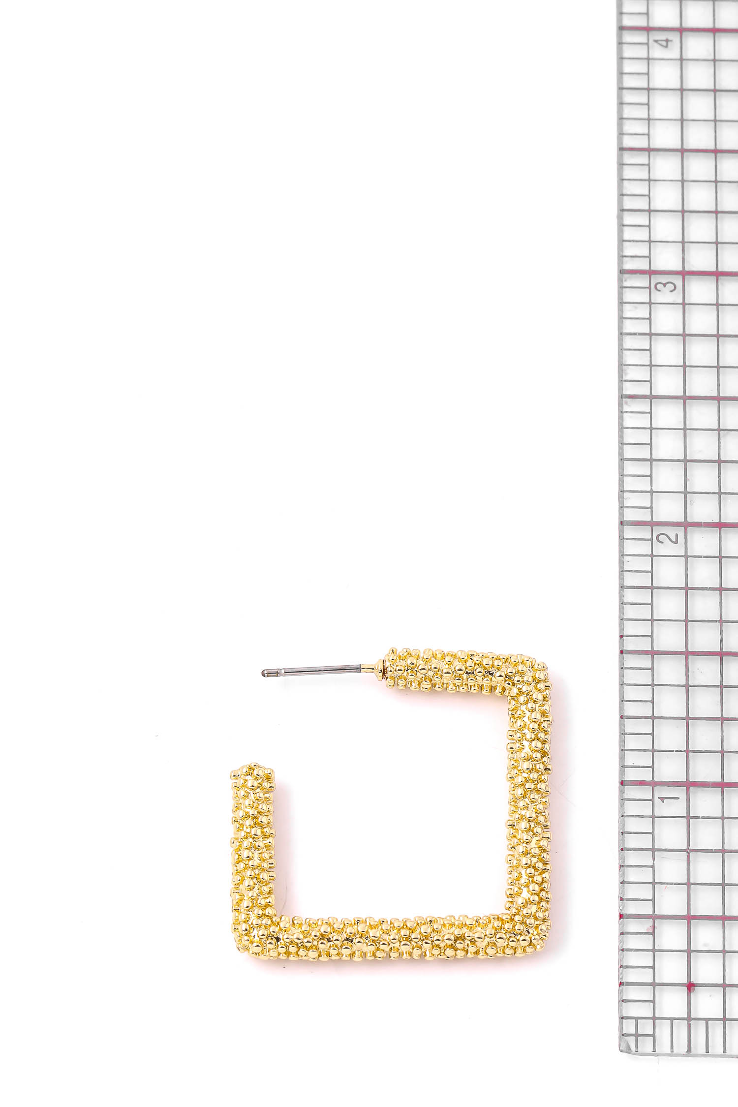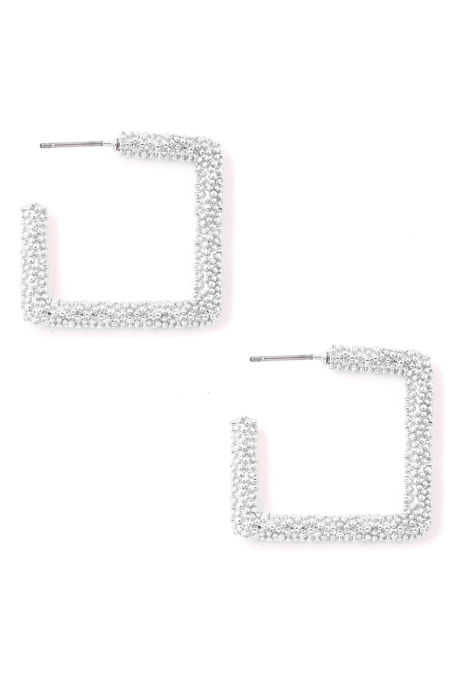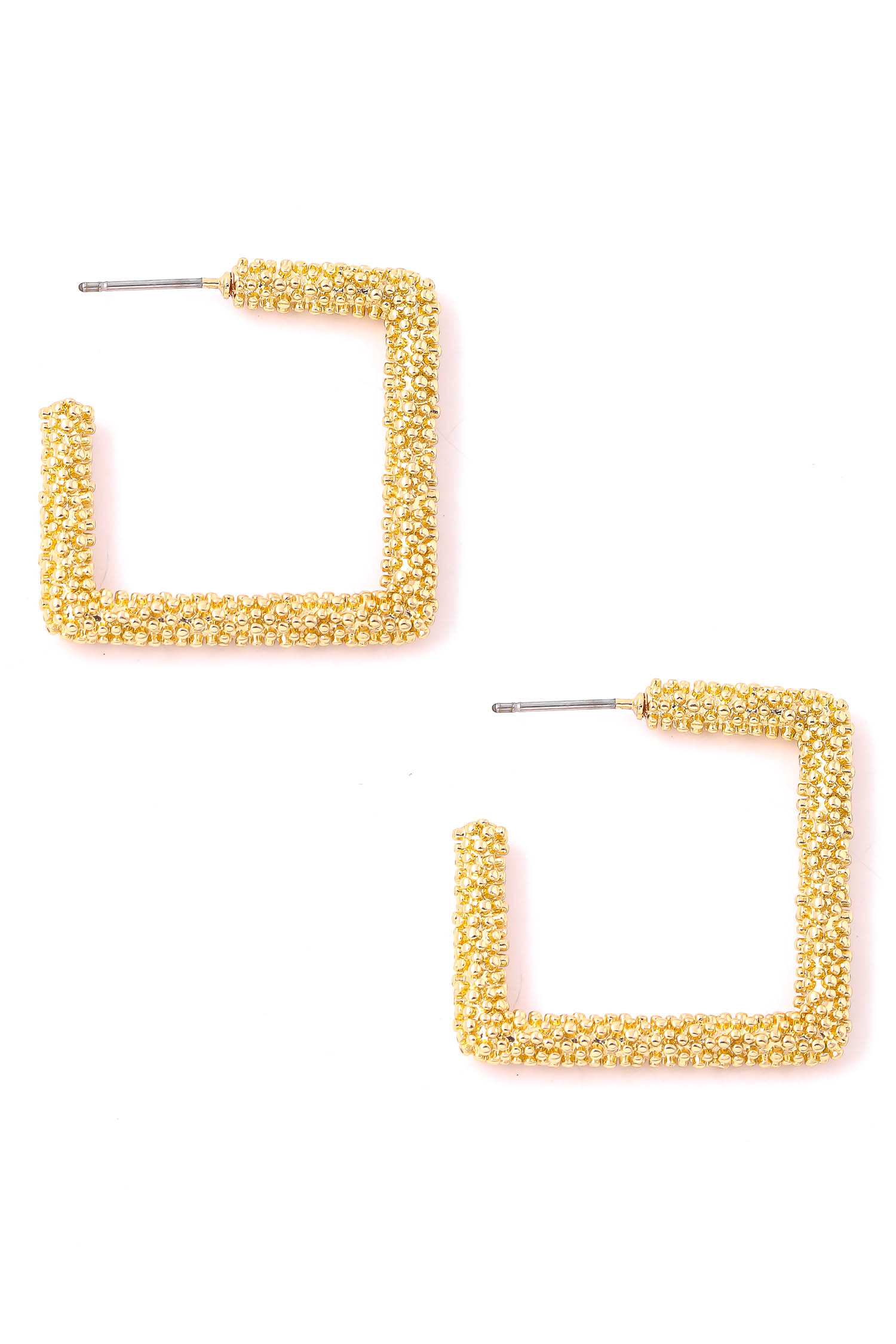 • "Chic casual in season must have pair of earrings that has a squared engraved hoop earrings design. A chic must have for this Fall season! Available in G and S. "