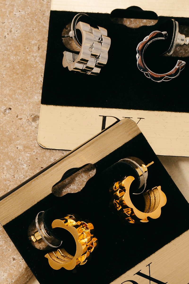 • This pair of hoop earrings brings a luxurious stainless steel layered style. Witness the transformative power of accessories as this piece effortlessly redefines your fashion narrative.