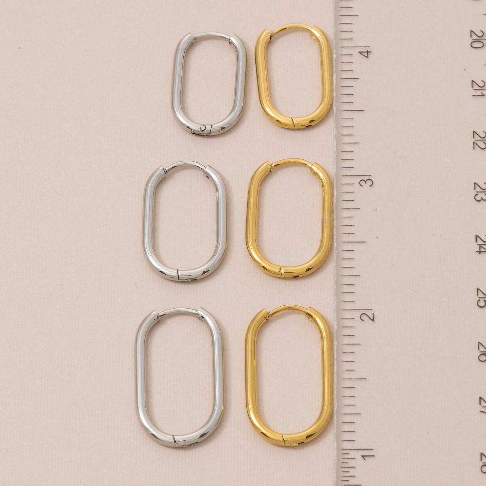 • Effortlessly elevate your outfit, this pair of hoop earrings adds a distinctive stainless steel oval hinge set design. Achieve a perfect blend of style and sophistication with this versatile pair of hoop earrings, a fashion-forward choice for any occasion. Available in GD, RD. This item is sold in packs of 1.