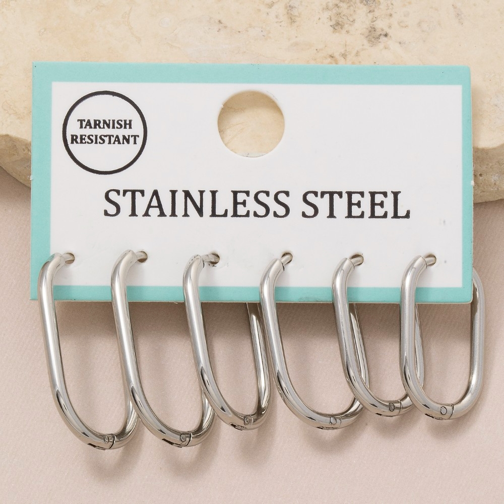 Stainless Steel Rectangle Hoop Earrings
