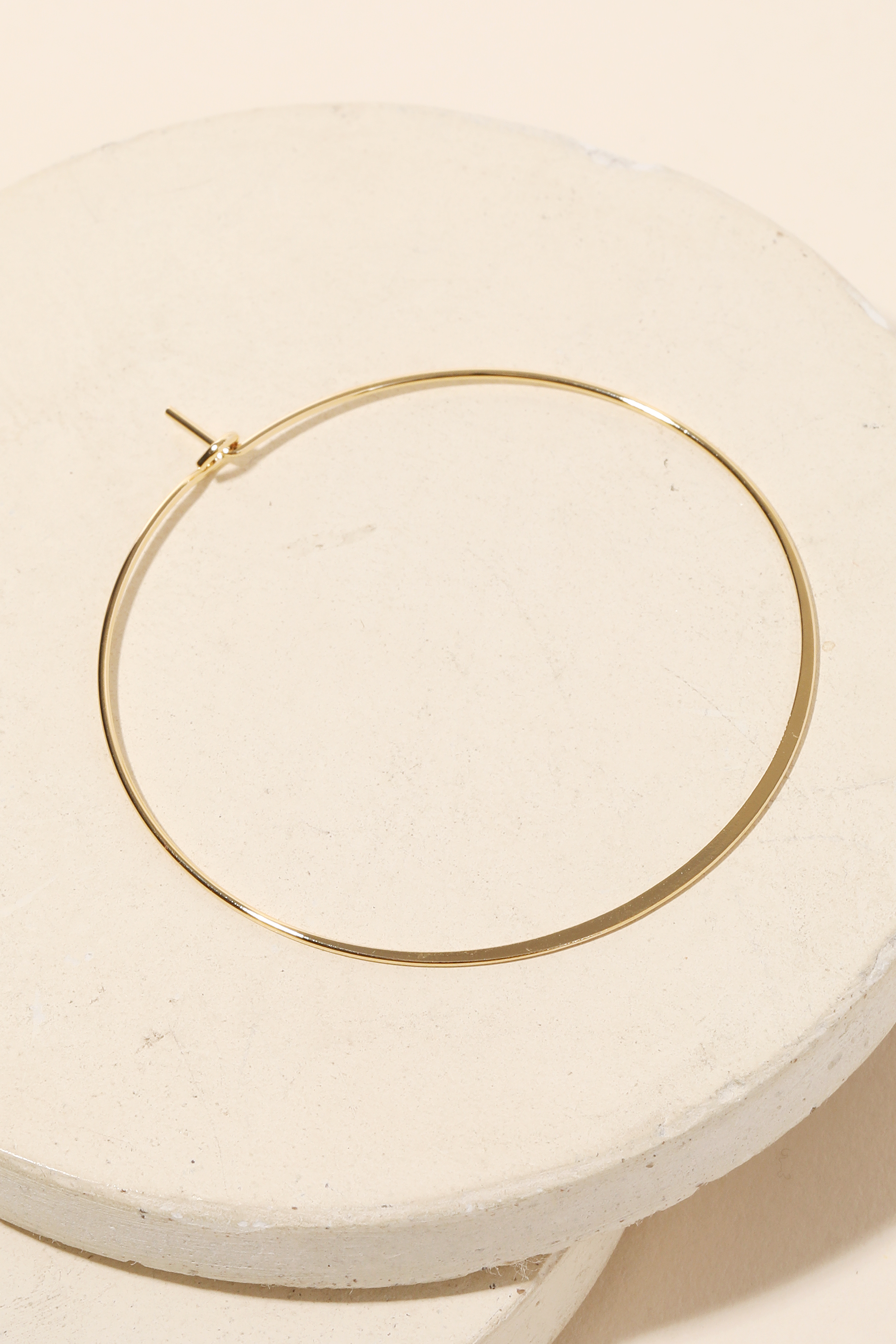 A simply stunning in season must have pair of hoop earrings is made into a thin metallic hoop earrings design. Adds a chic touch to any outfit! Available in G and S. This item is sold in packs of 1.