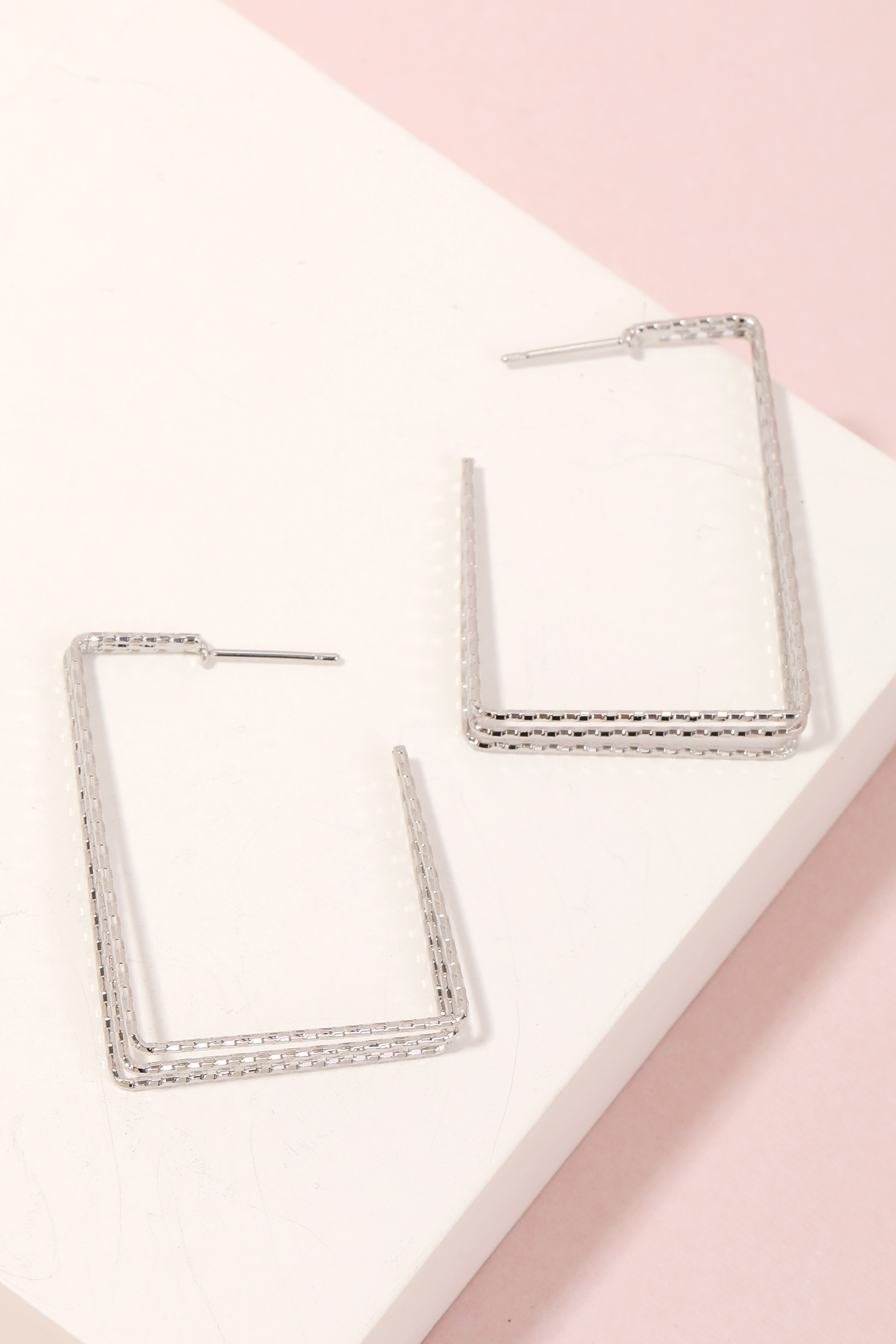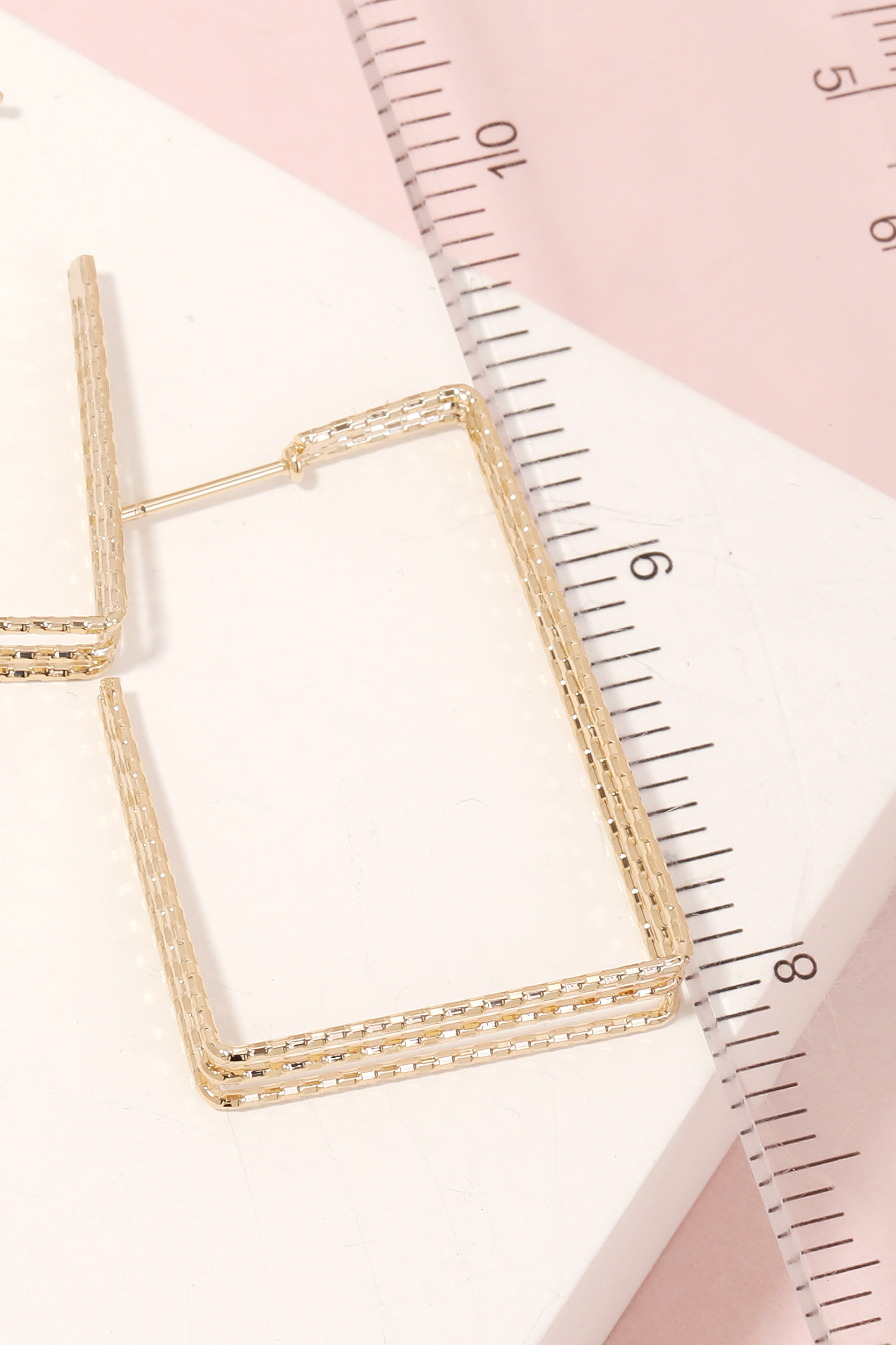 • This piece is a true showstopper, this pair of hoop earrings comes with a special thin three line rectangle hoop earrings design. This versatile accessory adds a touch of elegance to any outfit. Available in G and S. This item is sold in packs of 1.