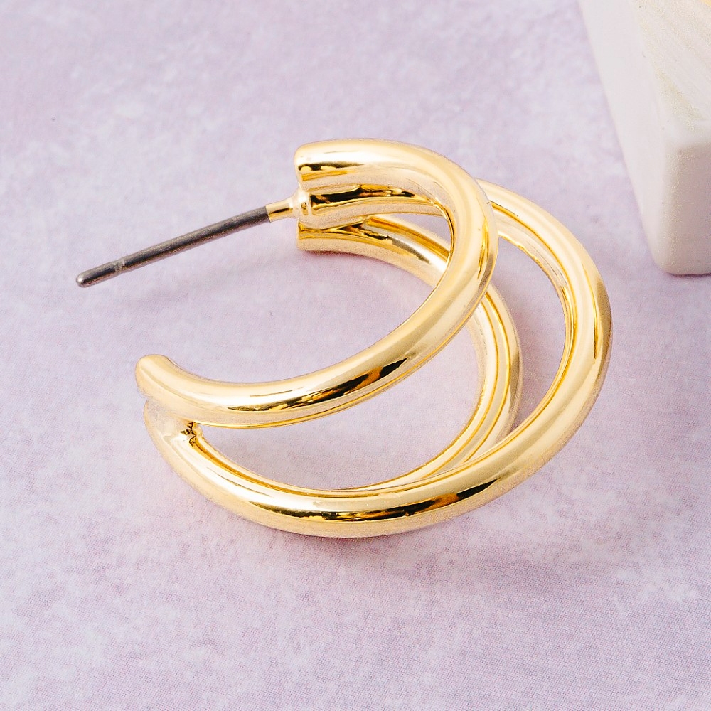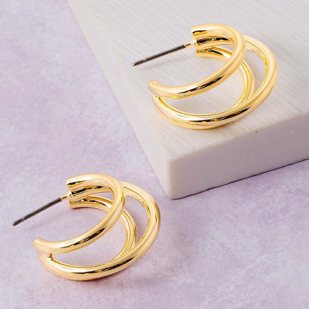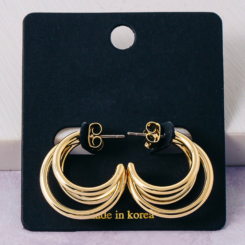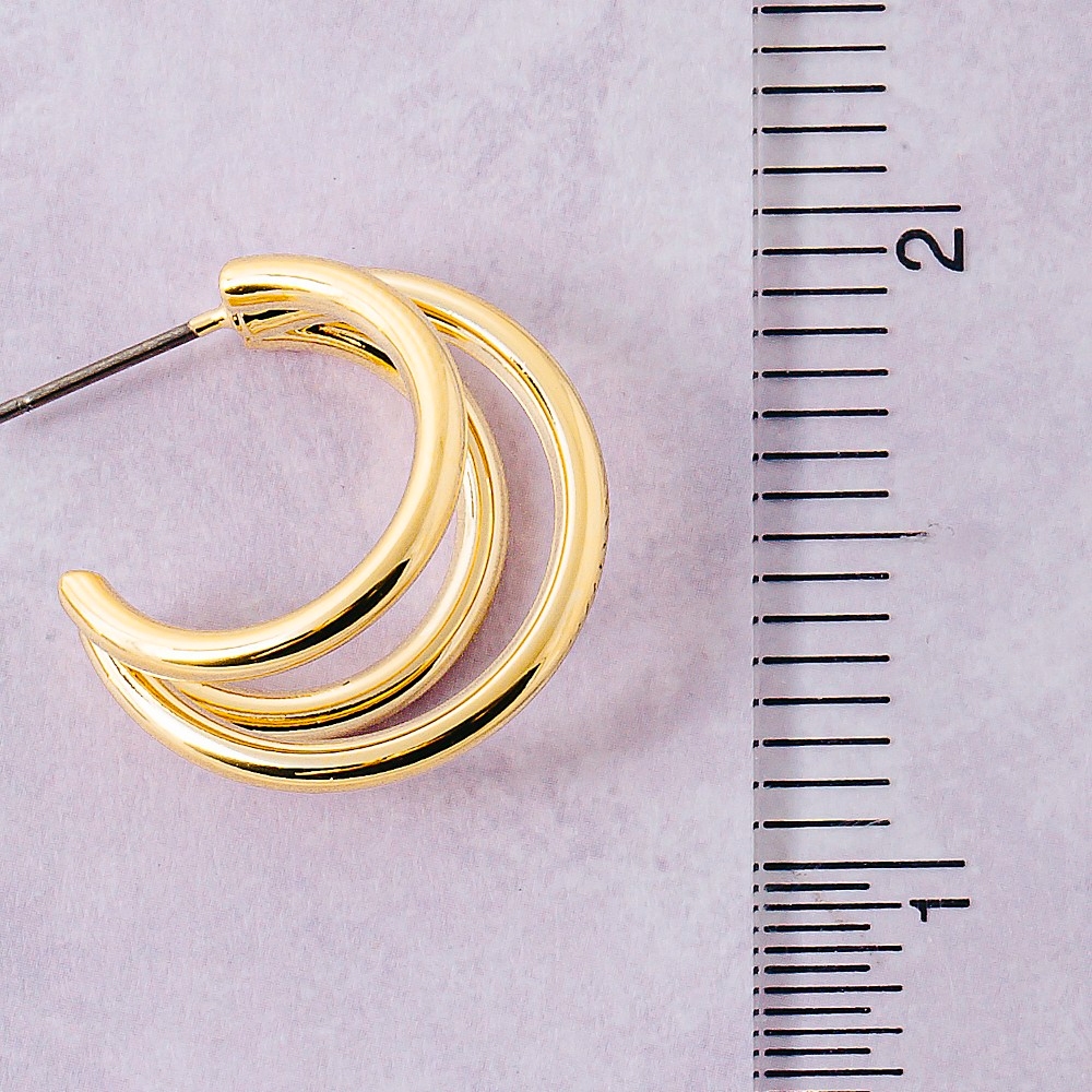 - Perfect for any fashion-forward individual, this pair of hoop earrings incorporates a remarkable three layered design. Perfect for dressing up or down, this versatile pair of hoop earrings adds a touch of sophistication to any look. Available in G. This item is sold in packs of 1.