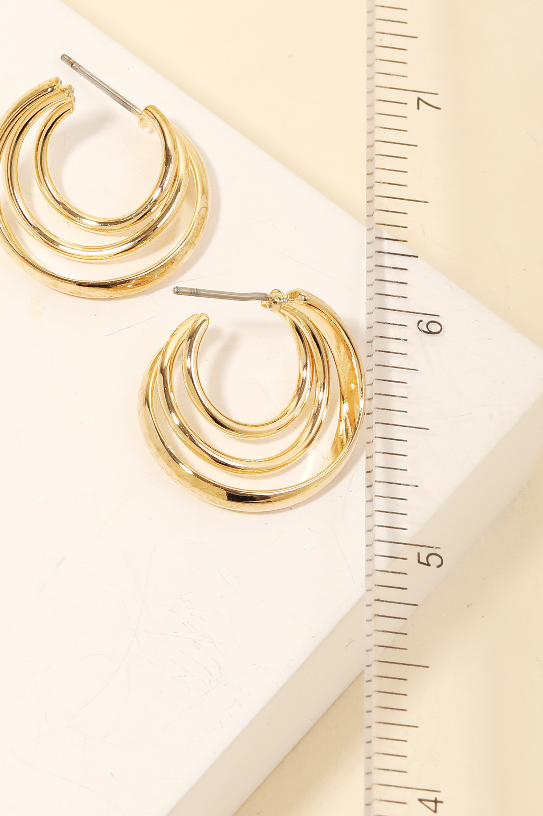 • Effortlessly elevate your style, this pair of hoop earrings boasts a magnificent triple layered metallic design. This item is perfect for adding some color and vibrancy to any outfit. Available in G and S. This item is sold in packs of 1.