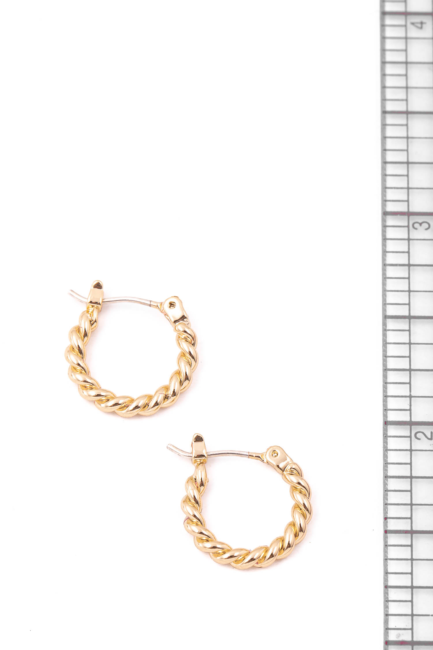 A stunning must have pair of earrings that has a beautiful twisted metallic latch hoop earrings design. An excellent choice for business casual occasions! Available in G and S.