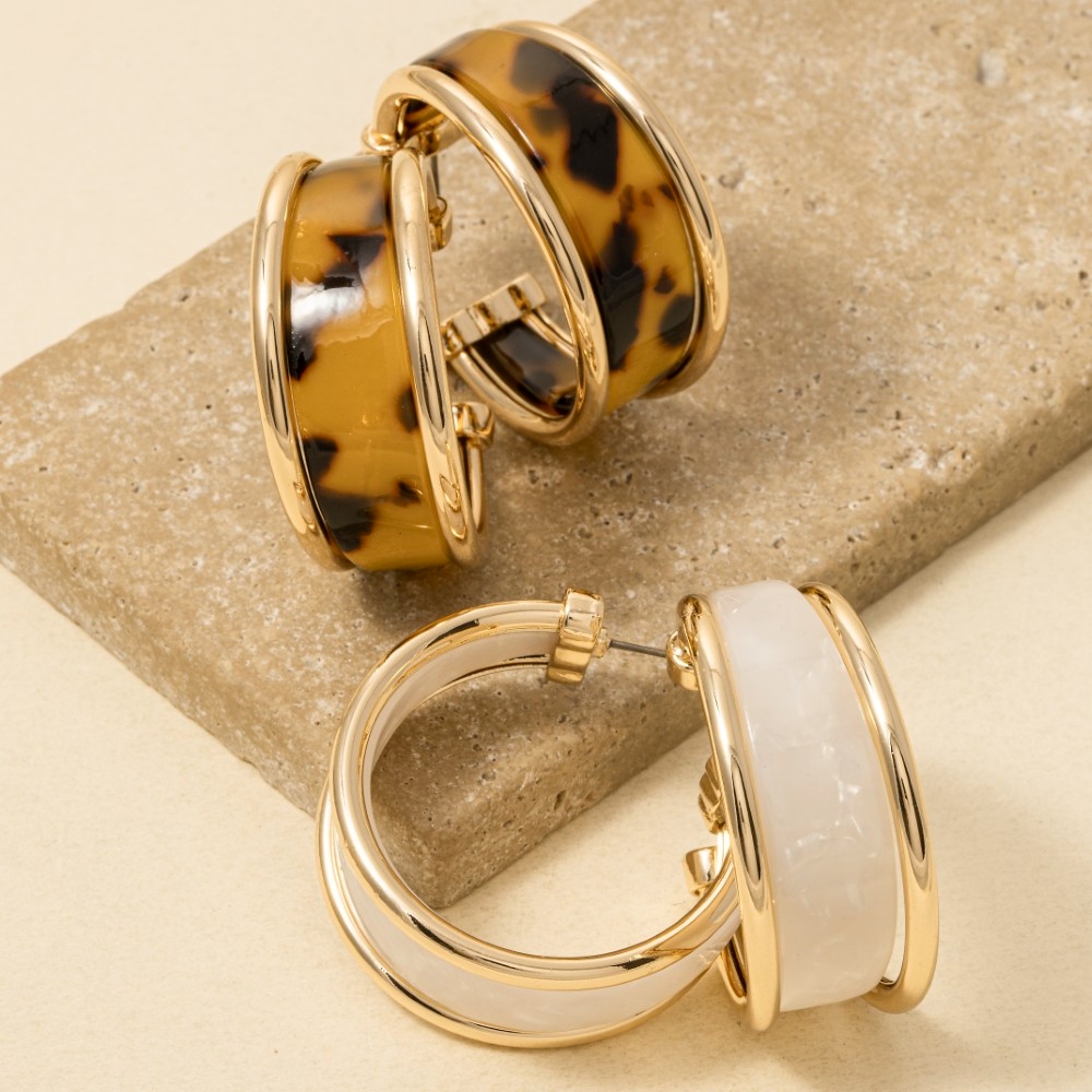 Acetate And Metallic Hoop Earrings