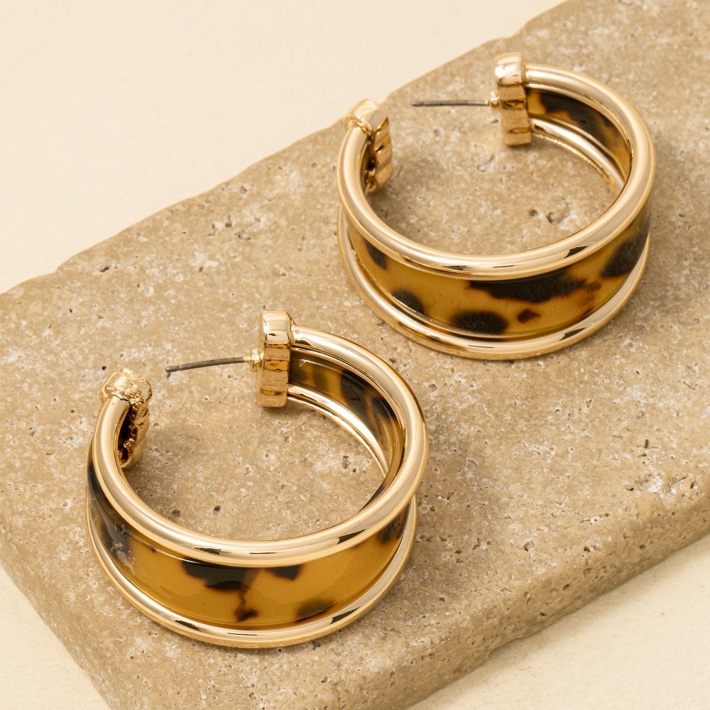 Tortoise Shell Bubbly Resin Oval Hoop Earrings