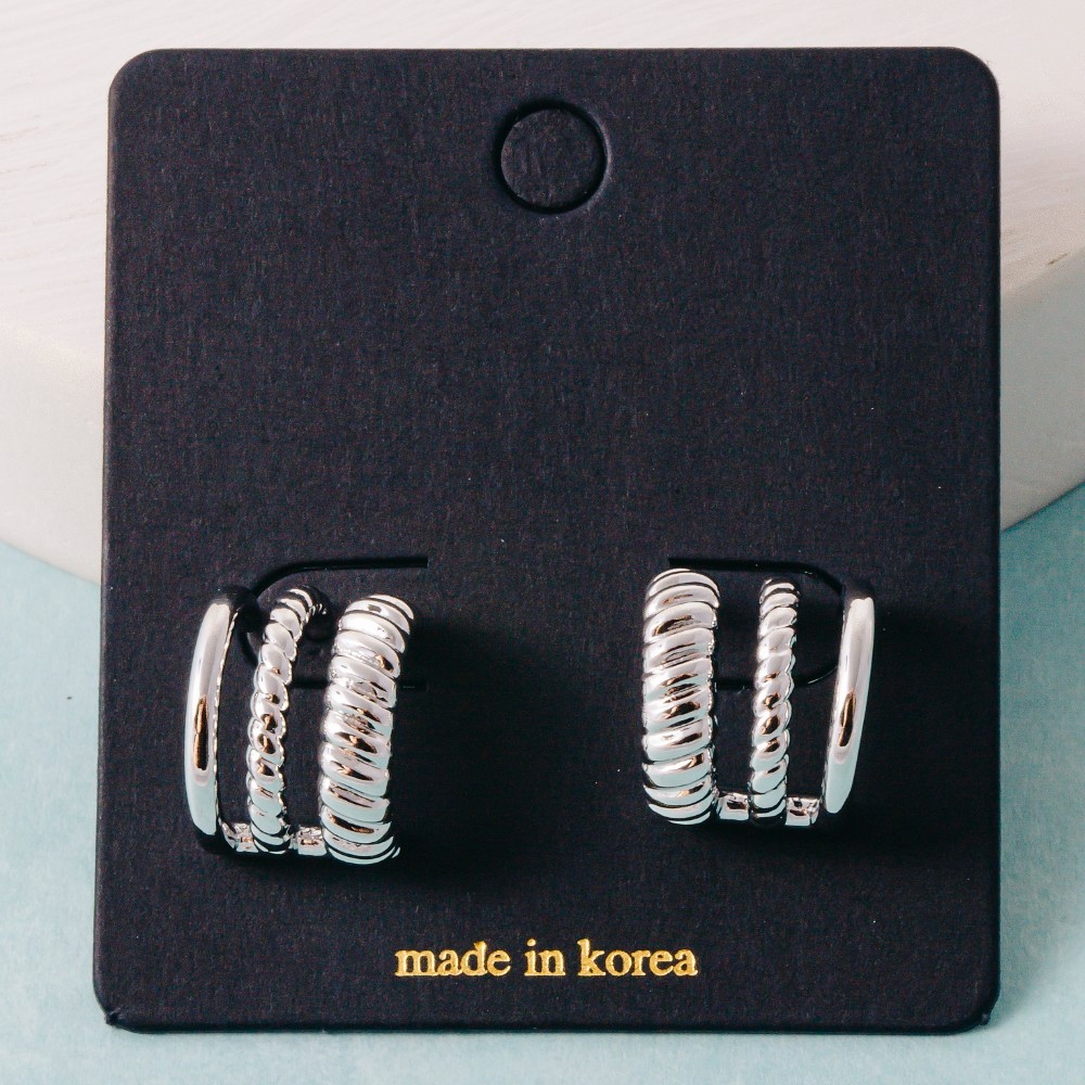Add a touch of elegance and glamour to your look, this pair of hoop earrings brings a one-of-a-kind wide layered mini design. The perfect way to elevate any outfit, this pair of hoop earrings adds a touch of elegance and style. Available in G, S. This item is sold in packs of 1.
