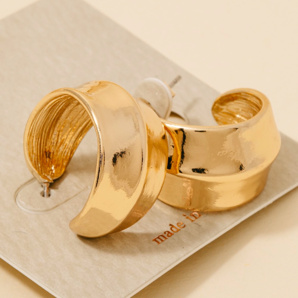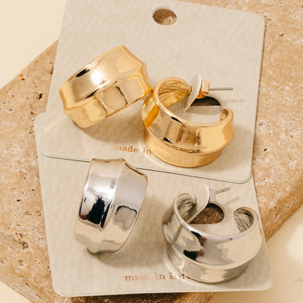 - This piece is both timeless and contemporary, this pair of hoop earrings reveals an intricate wide metallic design. A versatile pair of hoop earrings that's perfect for any occasion, adding a touch of elegance and style to any outfit. Available in G, S. This item is sold in packs of 1.