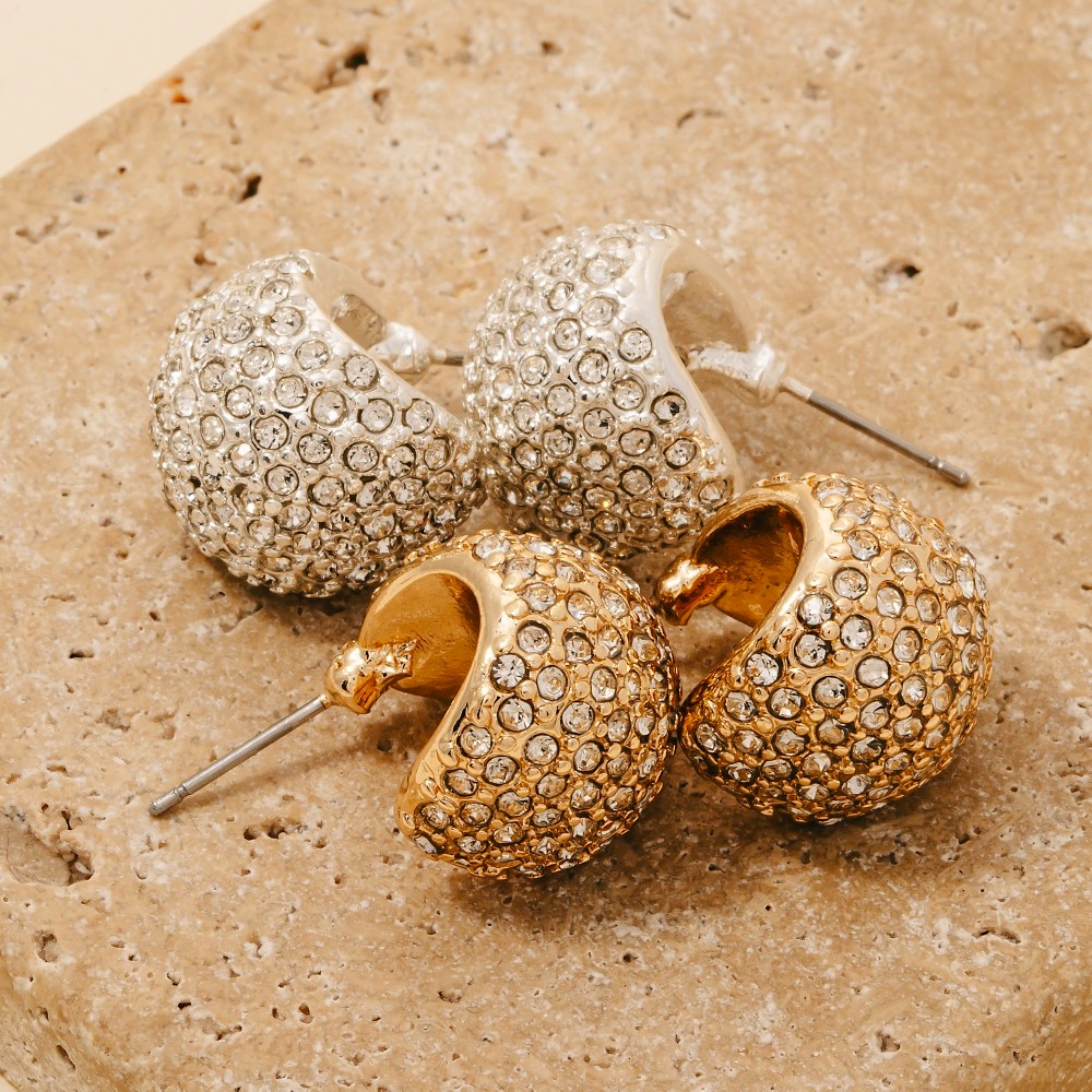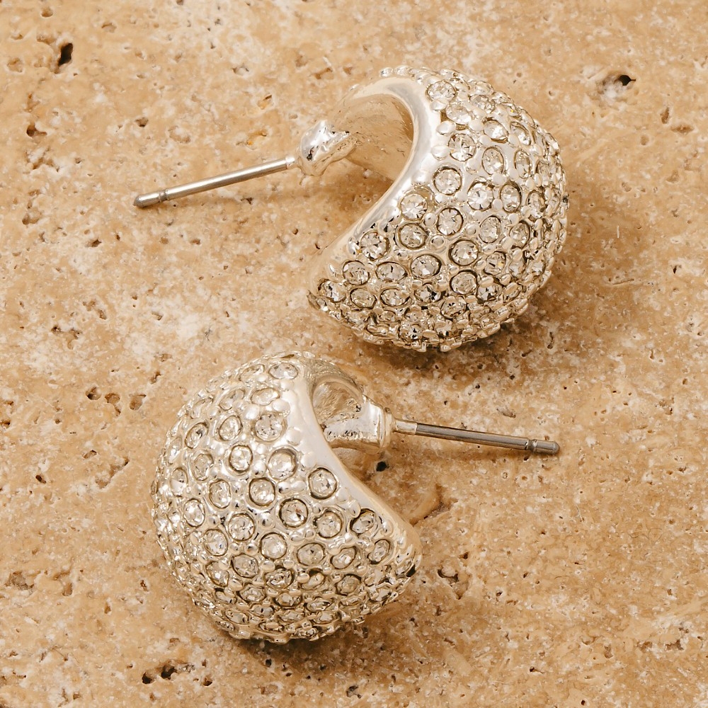 A unique and stylish piece that sets you apart, this pair of hoop earrings showcases a breathtaking wide pave design. Elevate your fashion IQ with this versatile pair of hoop earrings, designed to seamlessly integrate into any style profile. Available in G, S. This item is sold in packs of 1.