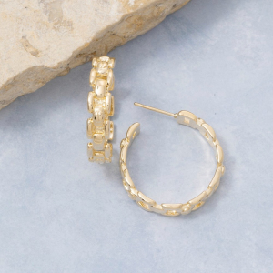 Gold Chain Link Textured Hoop Earrings