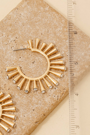 Gold Dipped Cz Pave Edge Crescent Hoop Earrings