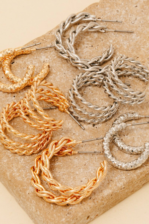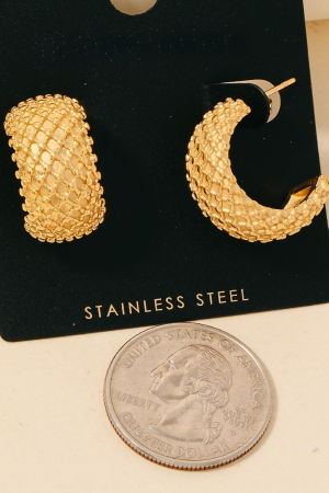 Stainless Steel Mesh Pattern Wide Hoop Earrings