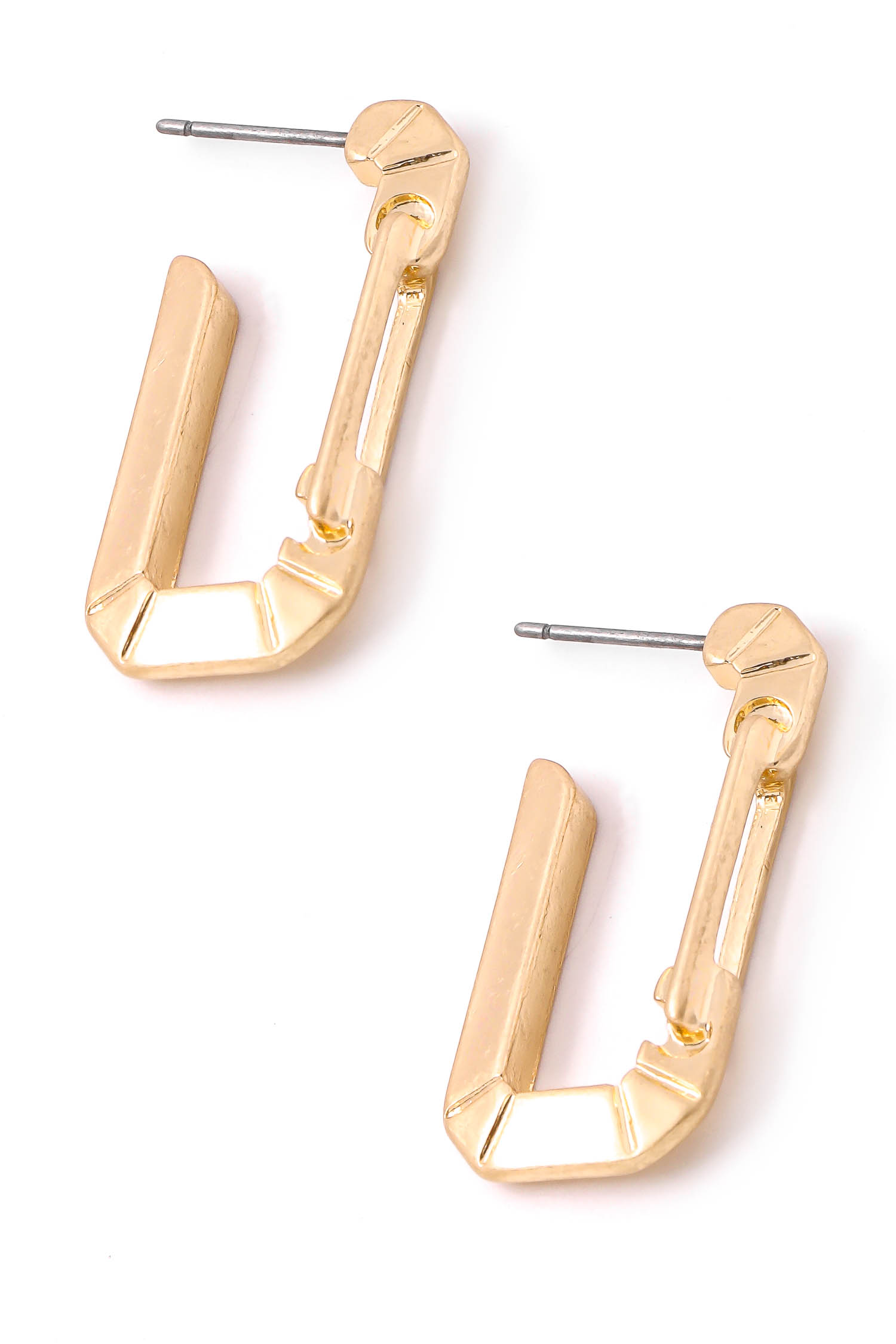 "An absolute must have trending in season pair of earrings has a unique square edge lock hoop earrings design. This matches almost any outfit you have planned! Available in Wg and Ws. "