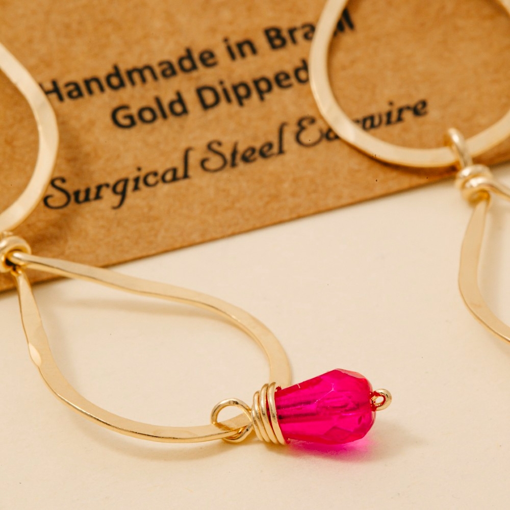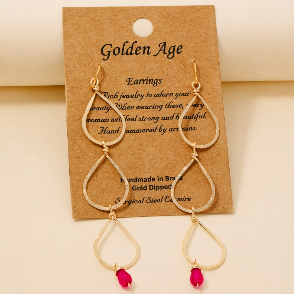 A must-have for any fashion-forward individual, this pair of dangle earrings brings a one-of-a-kind hot pink gem charm triple teardrop design. The perfect way to elevate any outfit, this pair of dangle earrings adds a touch of elegance and style. Available in HOT PINK. This item is sold in packs of 1.