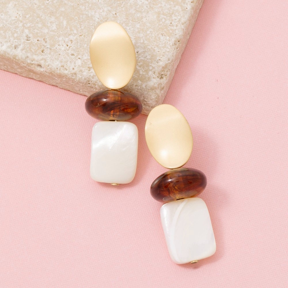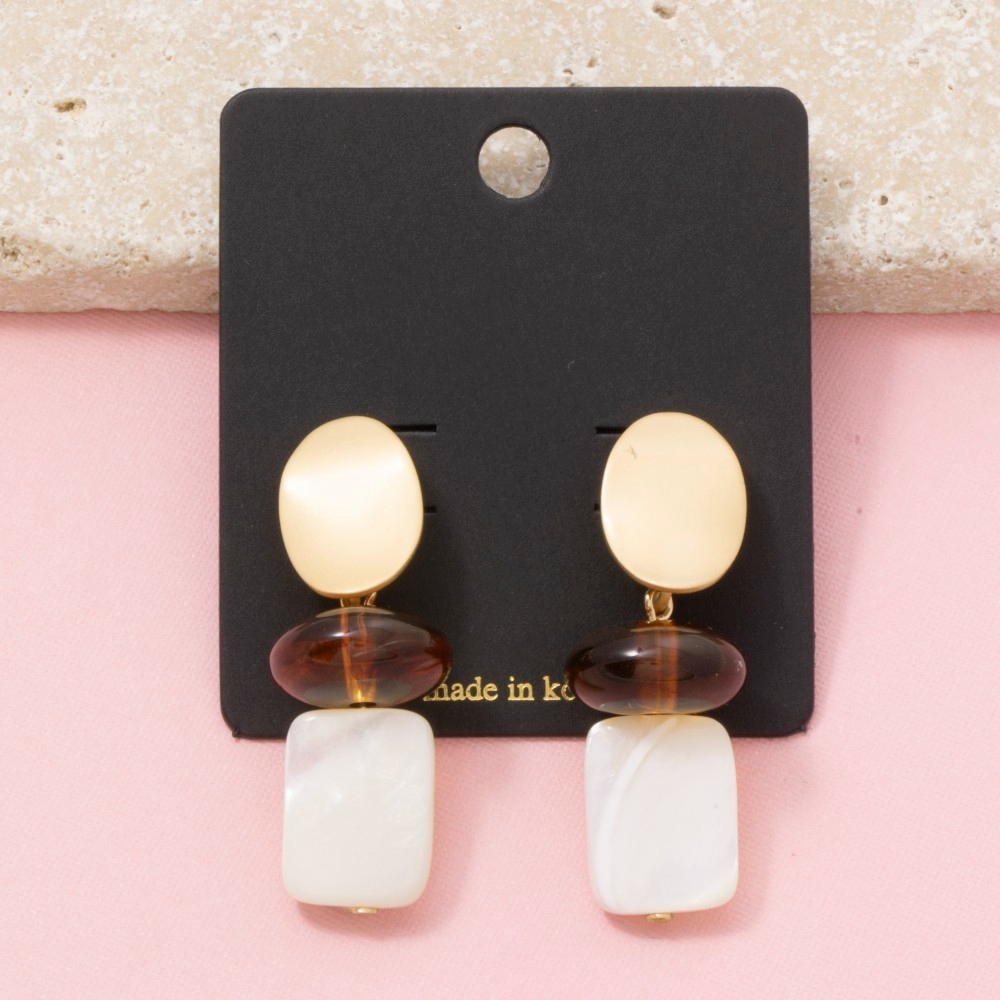 Make a bold statement, this pair of drop earrings incorporates a flawless ivory resin amber bead shell design. Master the art of accessorizing with this versatile pair of drop earrings, a key element for achieving a chic and polished look. Available in GOLD. This item is sold in packs of 1.