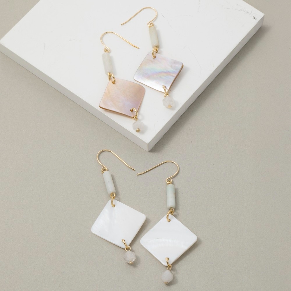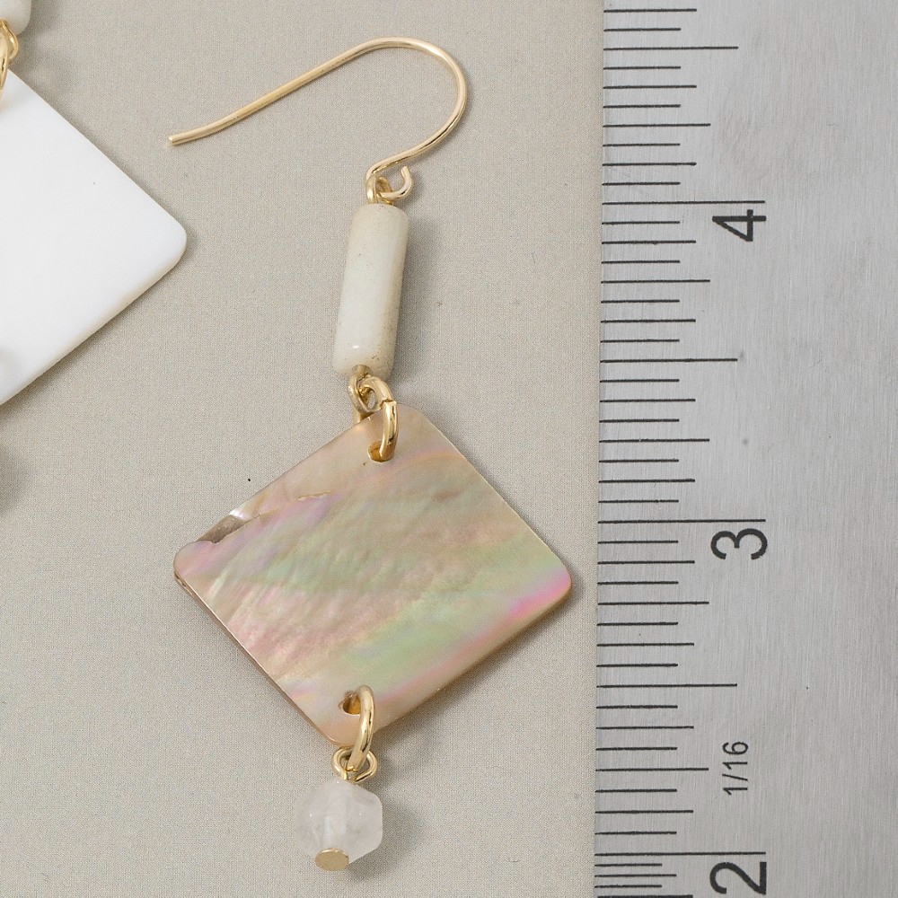 A timeless piece that you'll wear for years to come, this pair of earrings displays a unique ivory shell diamond drop bead design. Perfect for adding a pop of color or texture to any outfit, this pair of earrings is a must-have. Available in PK,IV. This item is sold in packs of 1.