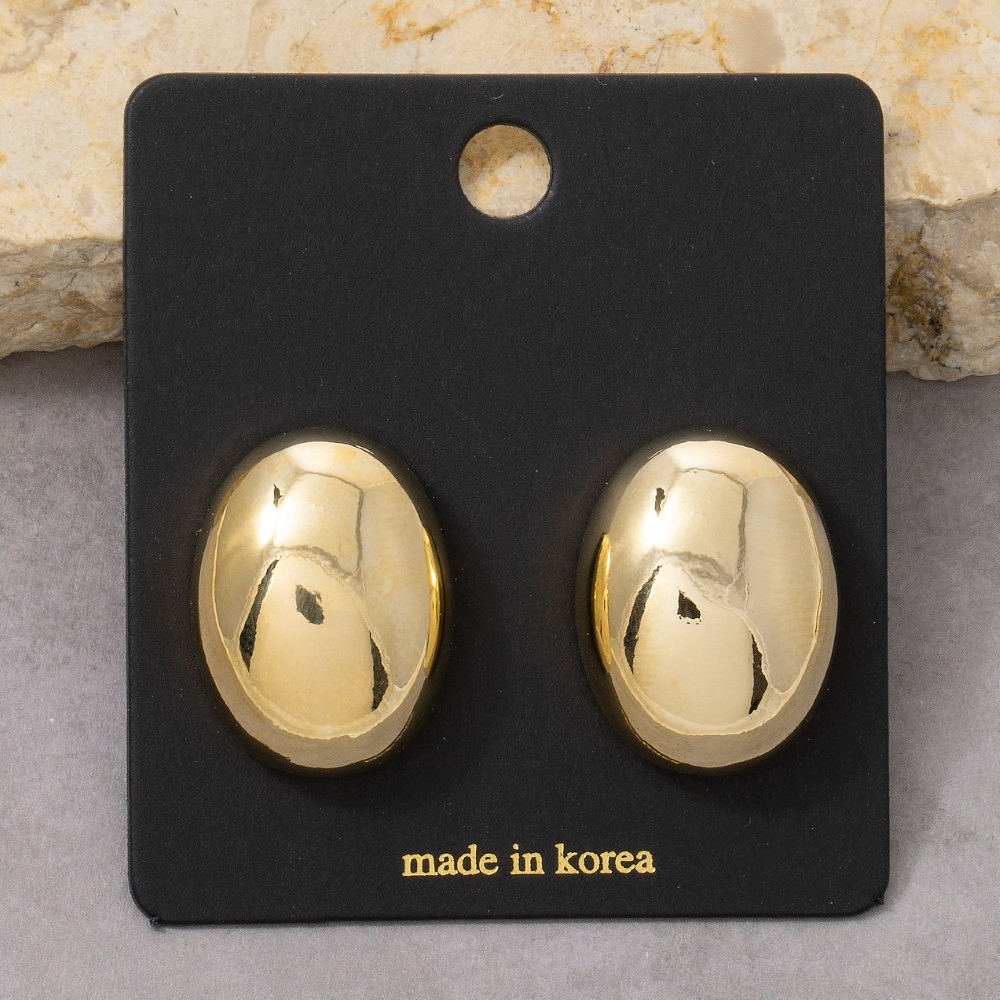 • Unleash your inner fashionista, this pair of stud earrings emanates an elegant large puffy oval dome design. Elevate your personal style effortlessly with this versatile pair of stud earrings, an essential component for a refined wardrobe. This item is sold in packs of 1.