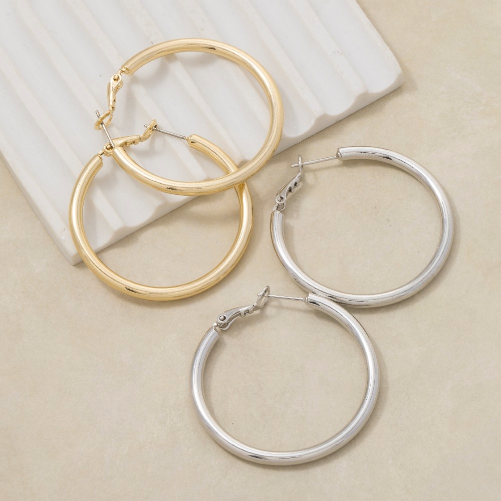 - This piece is both elegant and versatile, this pair of hoop earrings emanates an elegant large tube design. Take your style to the next level by incorporating this versatile pair of hoop earrings, a key element in achieving a polished look. Available in G, S. This item is sold in packs of 12.
