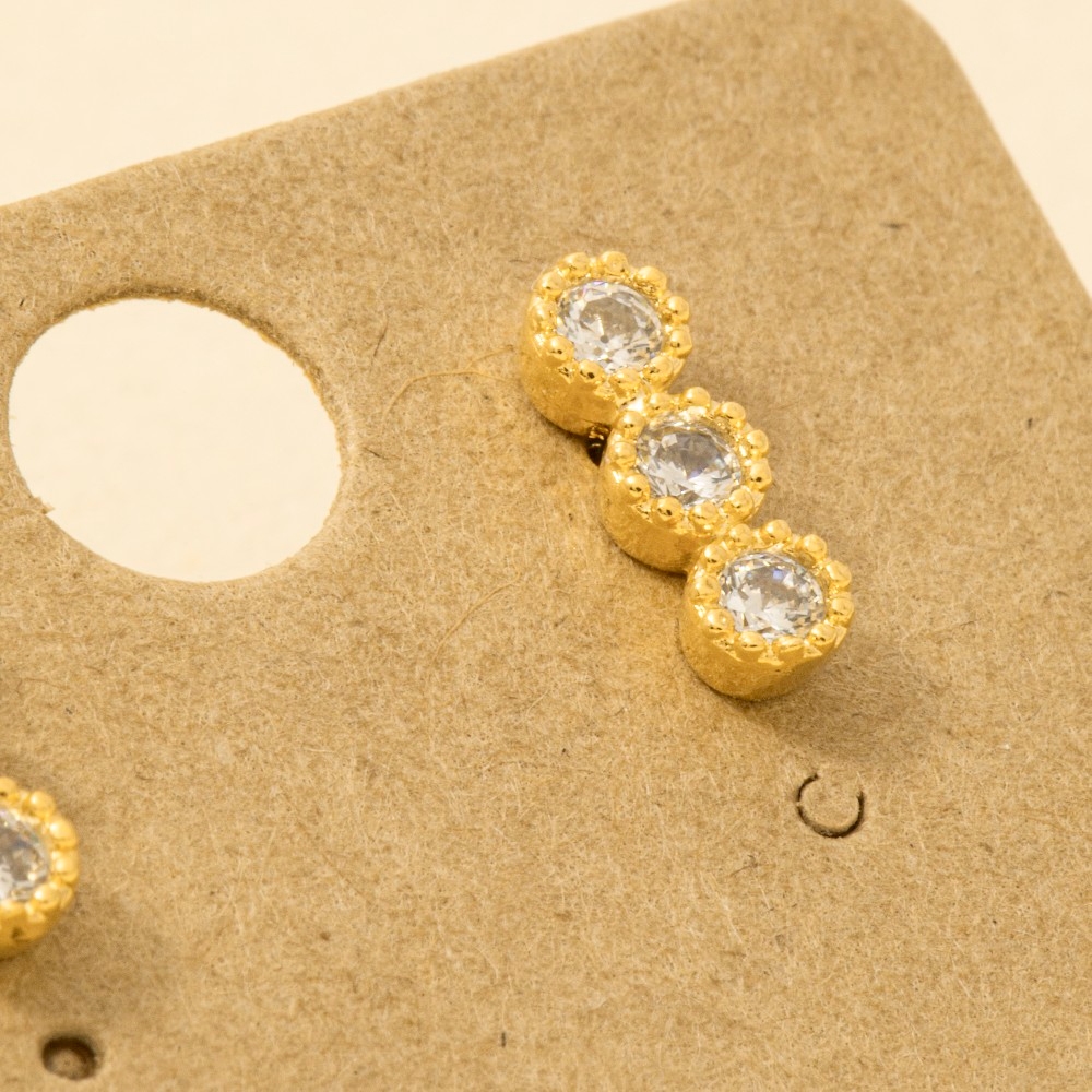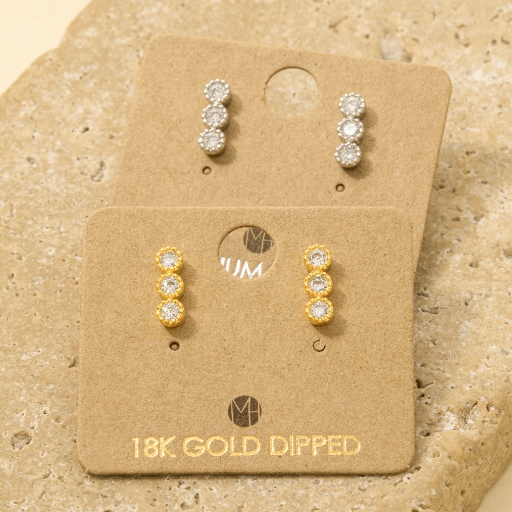 • A must-have addition to any pair of stud earrings collection, this pair of stud earrings comes with a special gold dipped cubic zirconia triple stud bar design. Embrace fashion flexibility with this versatile pair of stud earrings, designed to effortlessly enhance the sophistication of any outfit. Available in G, S. This item is sold in packs of 12.