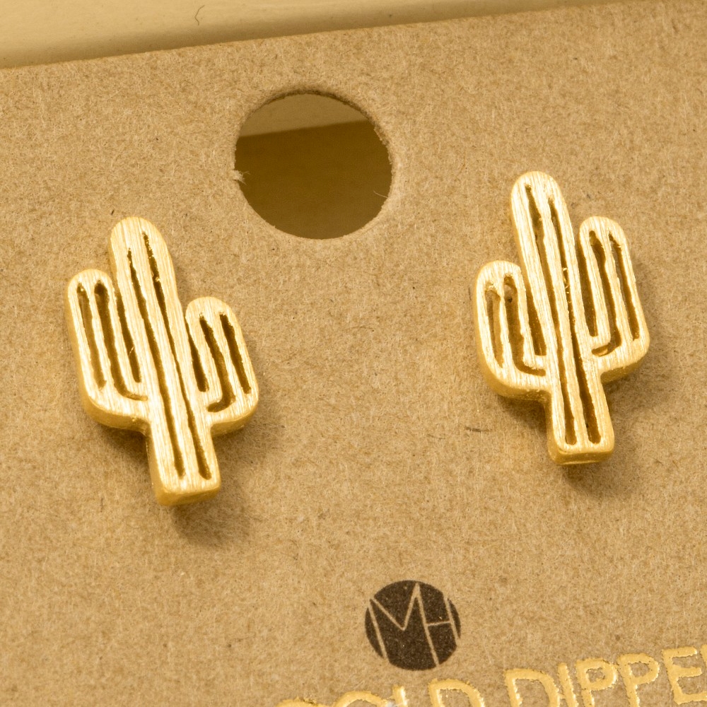 • Unleash your inner fashionista, this trending pair of earrings incorporates a remarkable gold dipped dainty desert cactus stud earrings design. Redefine your wardrobe with this versatile trending pair of earrings, a timeless addition that brings an air of sophistication to any look. Available in G, S and R. This item is sold in packs of 1.