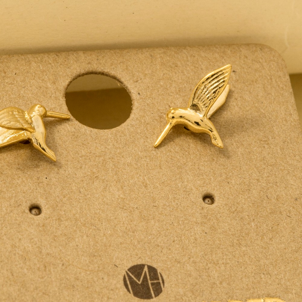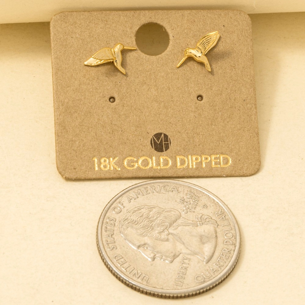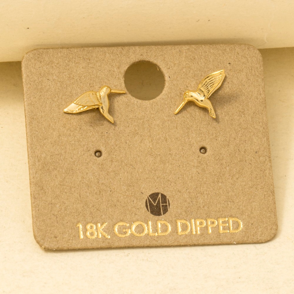 Unleash your inner fashionista, this trending pair of earrings presents a striking gold dipped humming bird stud earrings design. The perfect way to complete any outfit, whether you're dressing up or keeping it casual. Available in G, S. This item is sold in packs of 12.