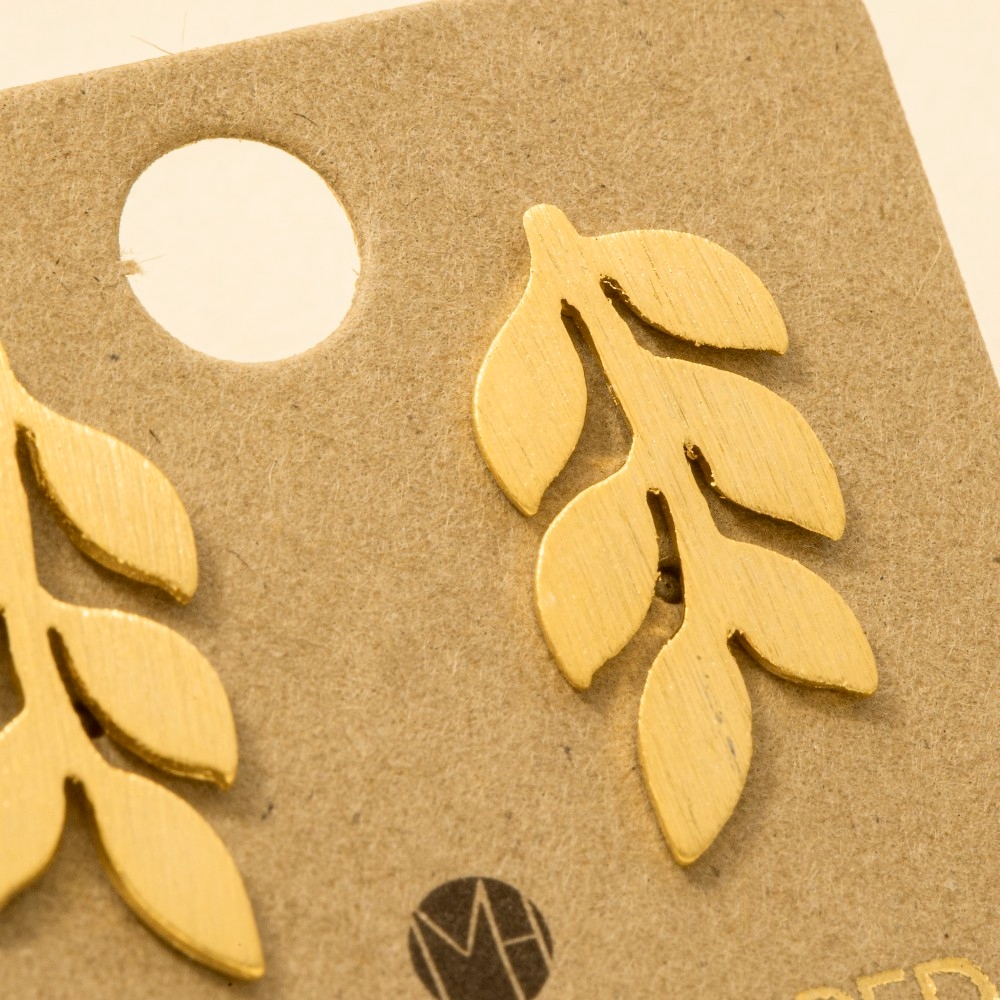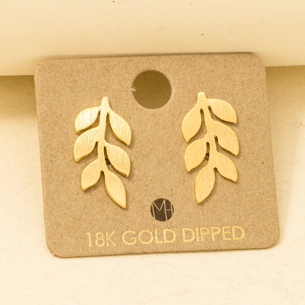 • An instant wardrobe staple, this pair of earrings incorporates a remarkable mini gold dipped leafy branch stud earring design. Perfect for adding a pop of color or texture to any outfit, this pair of earrings is a must-have. Available in G, S. This item is sold in packs of 12.